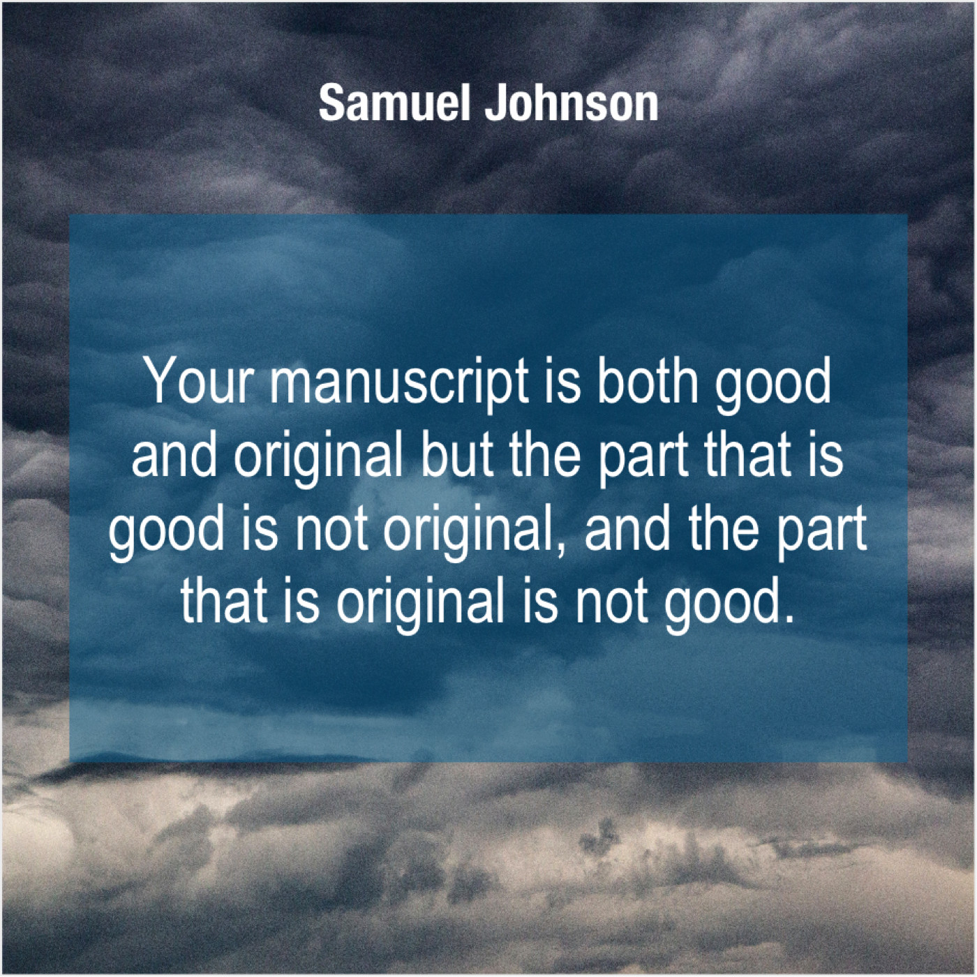 Samuel Johnson Samuel Johnson – Your manuscript is both good… September 24, 2019 admin “Your manuscript is both good and original but the part that is good is not original, and the part that is original is not good.”-Samuel Johnson
