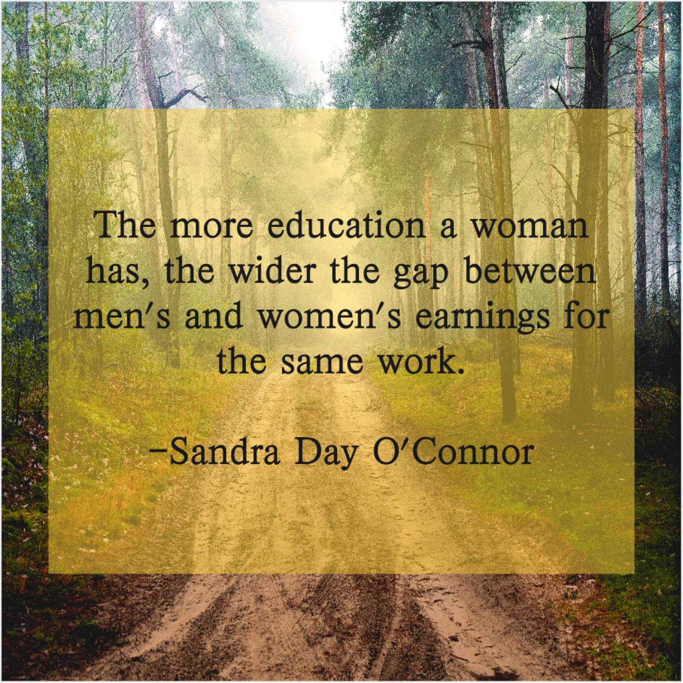 Sandra Day O'Connor Sandra Day O’Connor – The more education a woman… November 13, 2018 admin “The more education a woman has, the wider the gap between men’s and women’s earnings for the same work.”-Sandra Day O’Connor