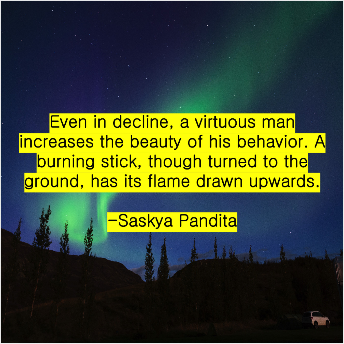“Even in decline, a virtuous man increases the beauty of his behavior. A burning stick, though turned to the ground, has its flame drawn upwards.”