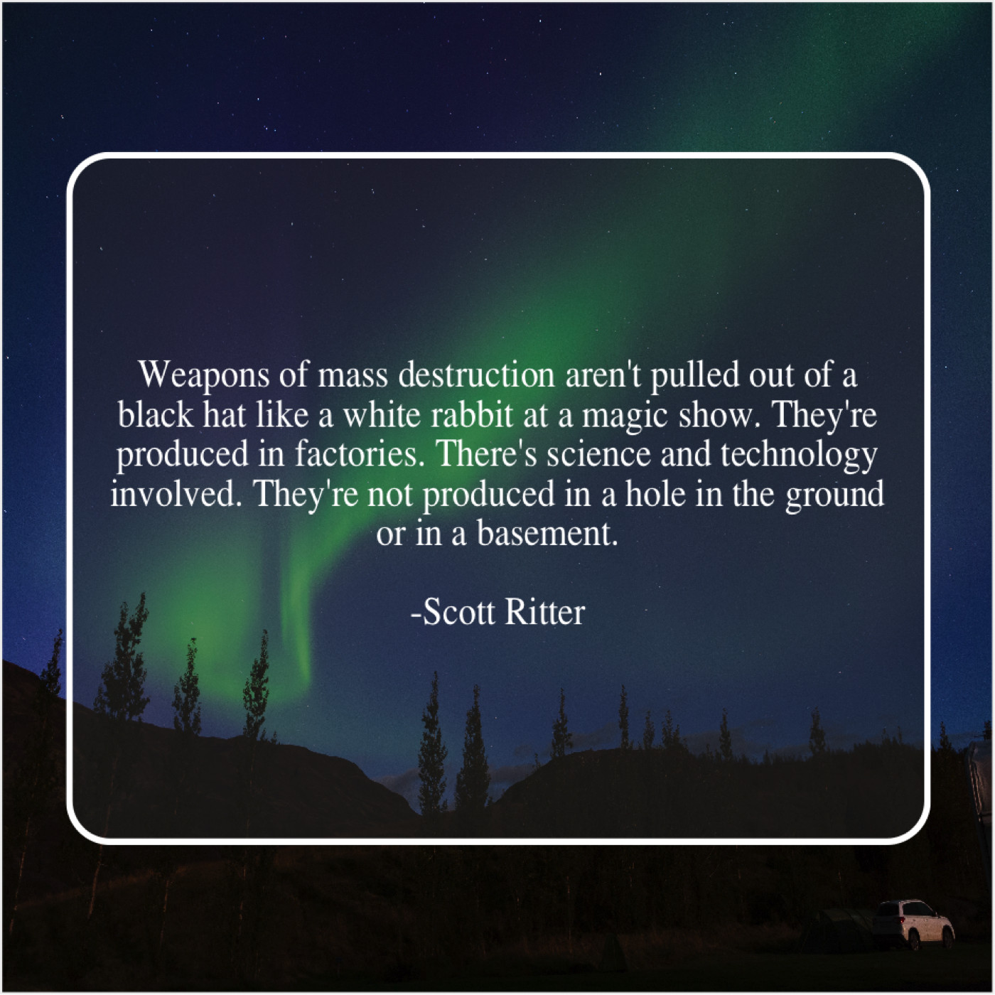 “Weapons of mass destruction aren’t pulled out of a black hat like a white rabbit at a magic show. They’re produced in factories. There’s science and technology involved. They’re not produced in a hole in the ground or in a basement.”