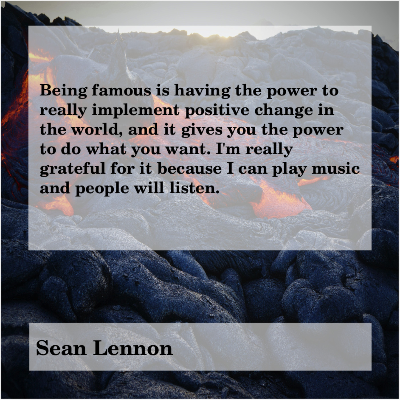 Sean Lennon Sean Lennon – Being famous is having the… October 16, 2019 admin “Being famous is having the power to really implement positive change in the world, and it gives you the power to do what you want. I’m really grateful for it because I can play music and people will listen.”-Sean Lennon