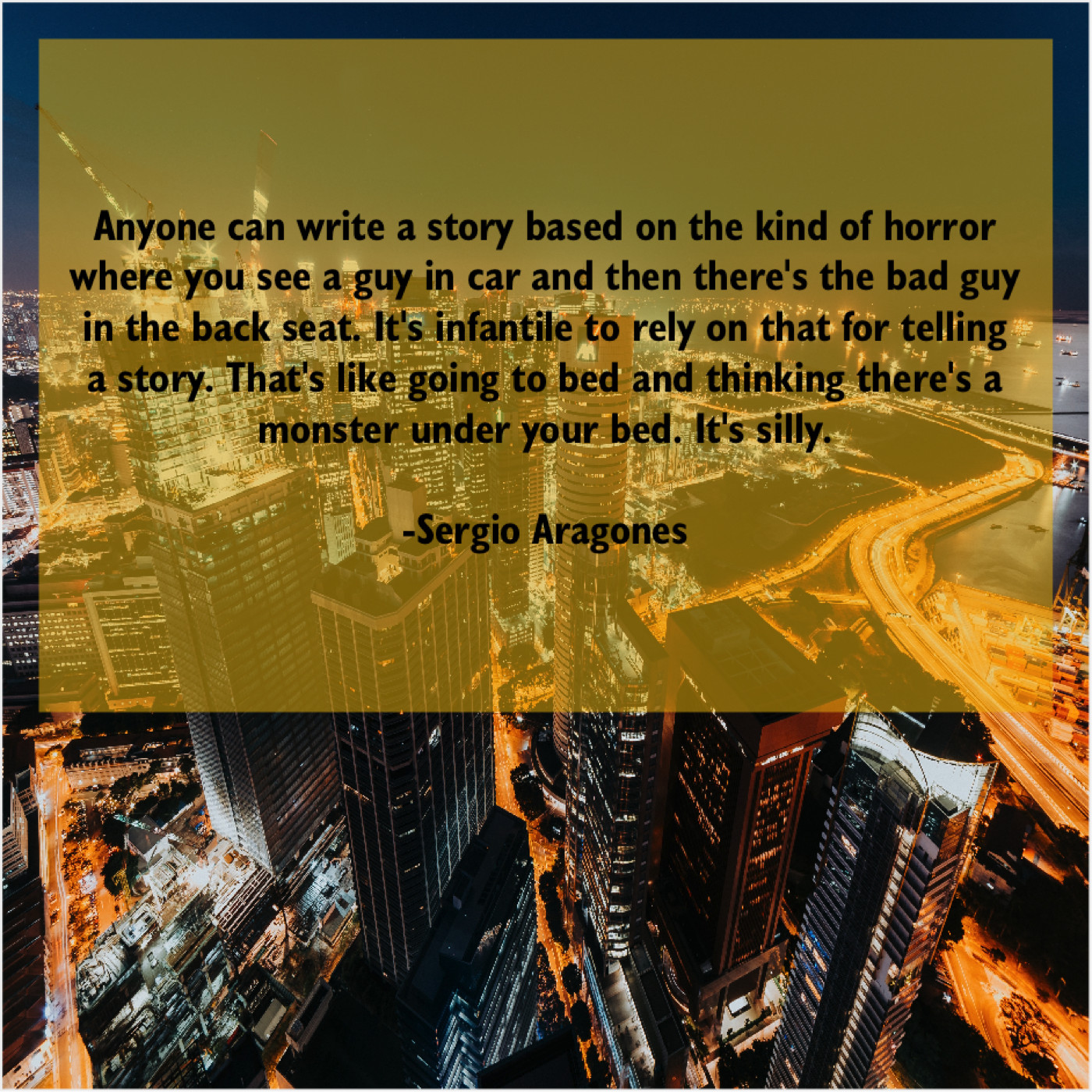 “Anyone can write a story based on the kind of horror where you see a guy in car and then there’s the bad guy in the back seat. It’s infantile to rely on that for telling a story. That’s like going to bed and thinking there’s a monster under your bed. It’s silly.”