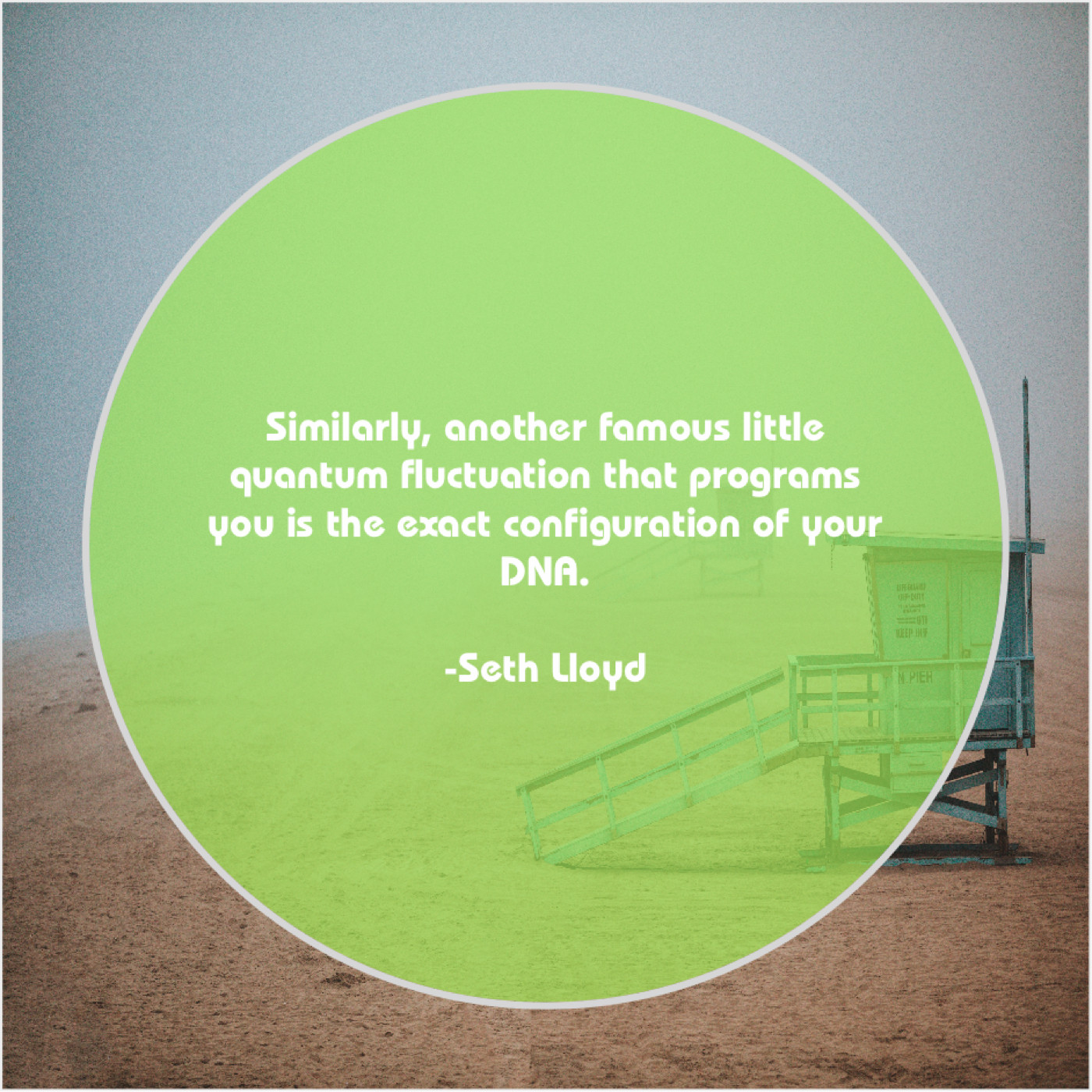 Seth Lloyd Seth Lloyd – Similarly, another famous little quantum… December 11, 2018 admin “Similarly, another famous little quantum fluctuation that programs you is the exact configuration of your DNA.”-Seth Lloyd
