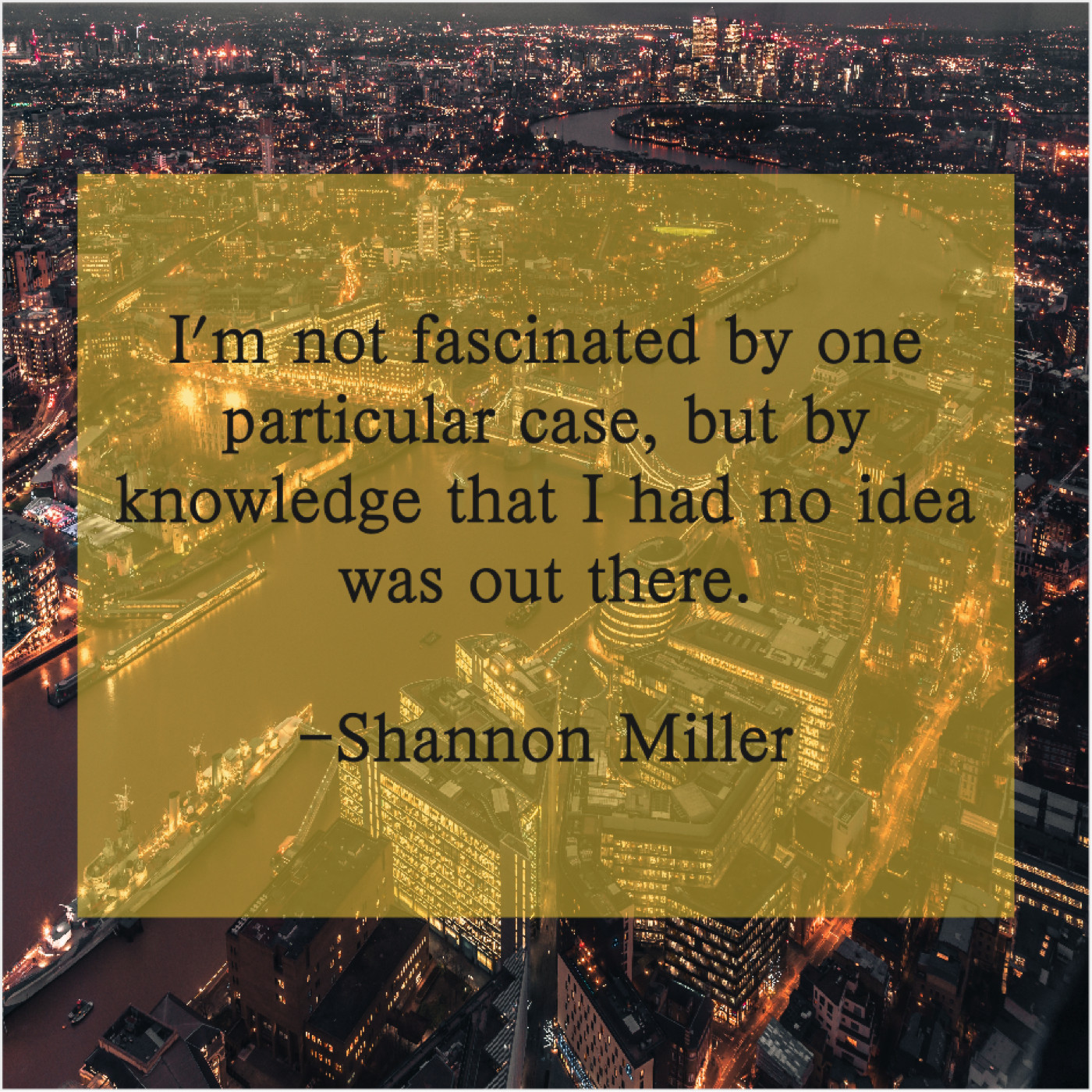Shannon Miller Shannon Miller – I’m not fascinated by one… April 19, 2019 admin “I’m not fascinated by one particular case, but by knowledge that I had no idea was out there.”-Shannon Miller