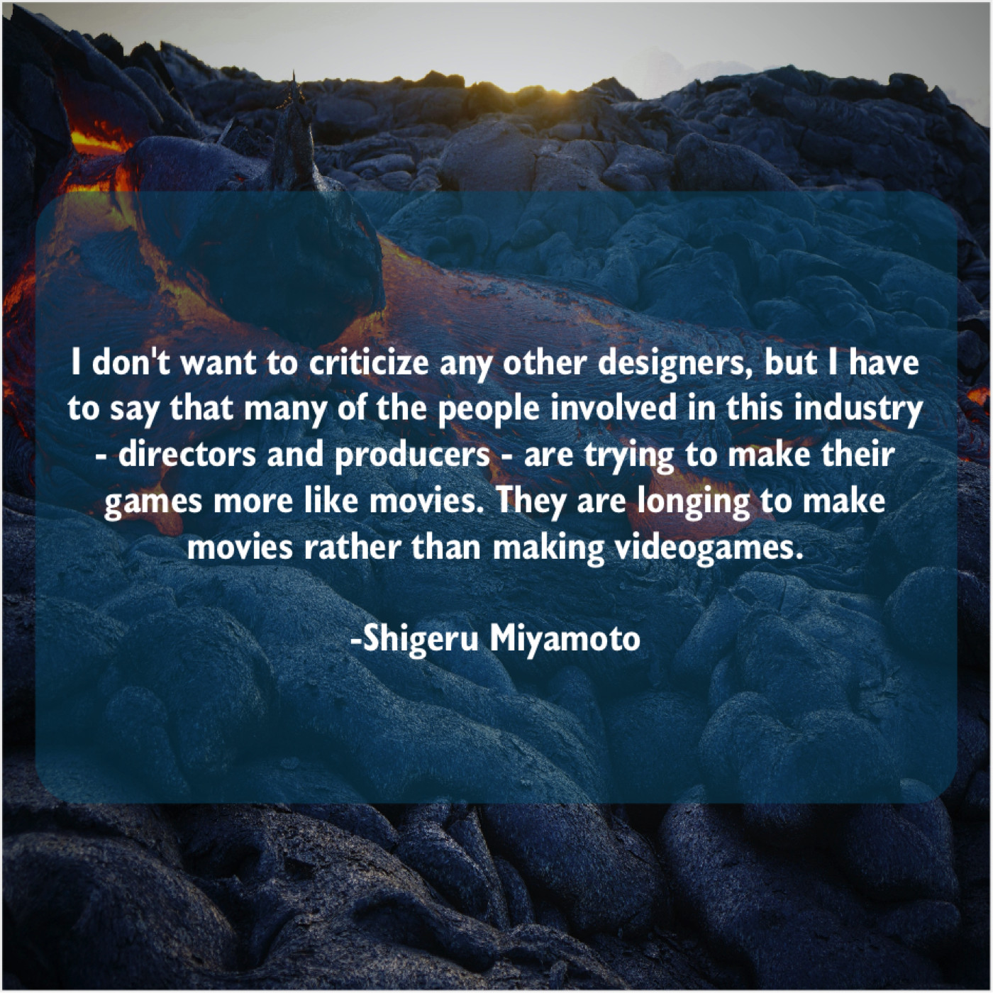 “I don’t want to criticize any other designers, but I have to say that many of the people involved in this industry – directors and producers – are trying to make their games more like movies. They are longing to make movies rather than making videogames.”