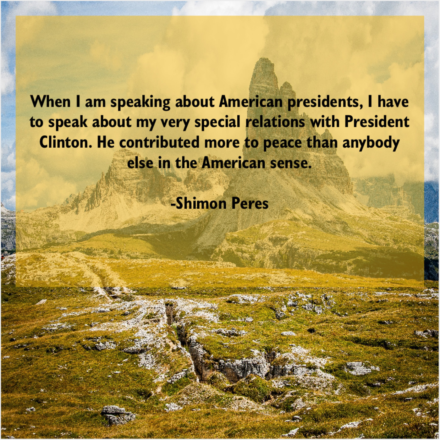 Shimon Peres Shimon Peres – When I am speaking about… June 14, 2019 admin “When I am speaking about American presidents, I have to speak about my very special relations with President Clinton. He contributed more to peace than anybody else in the American sense.”-Shimon Peres