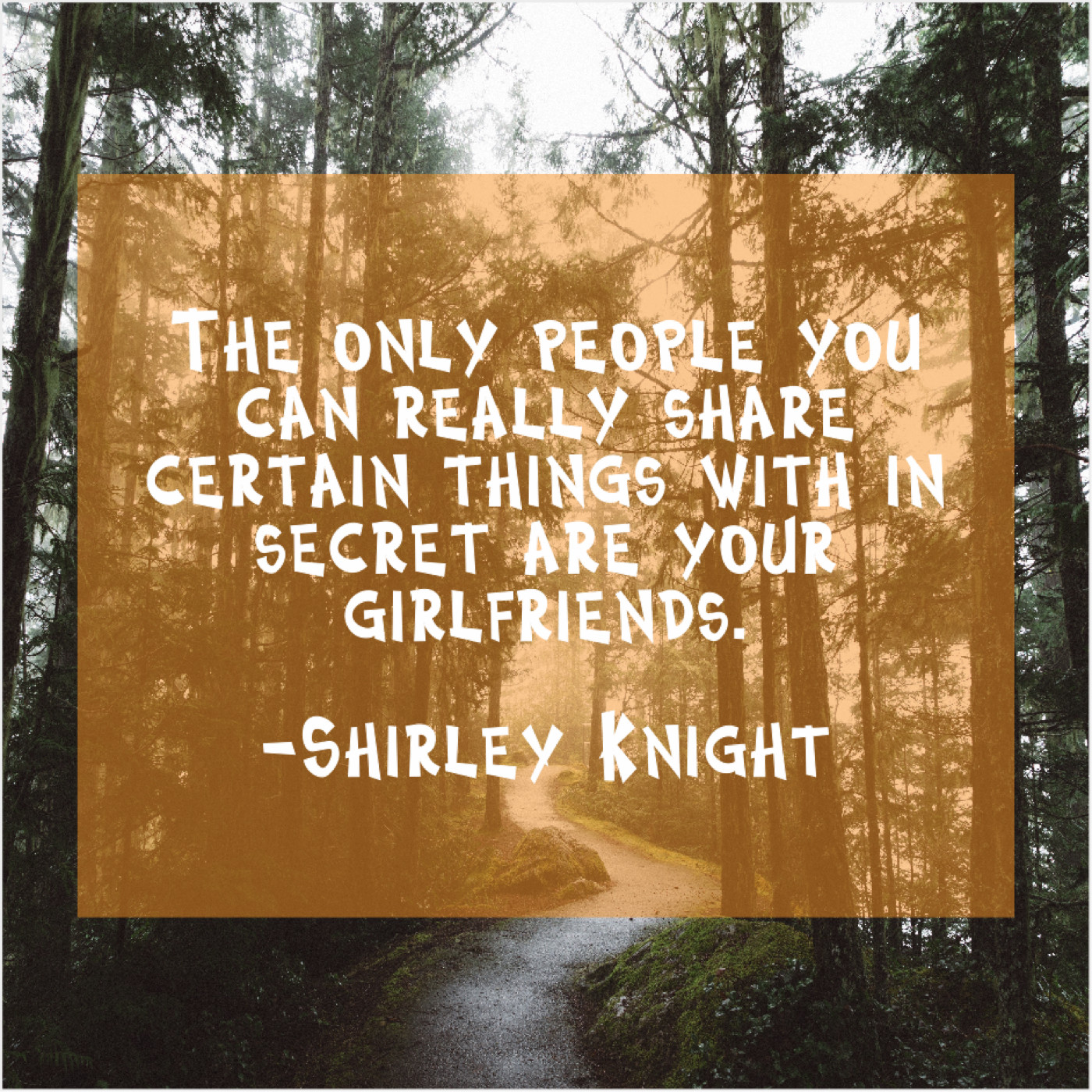 Shirley Knight Shirley Knight – The only people you can… January 7, 2019 admin “The only people you can really share certain things with in secret are your girlfriends.”-Shirley Knight