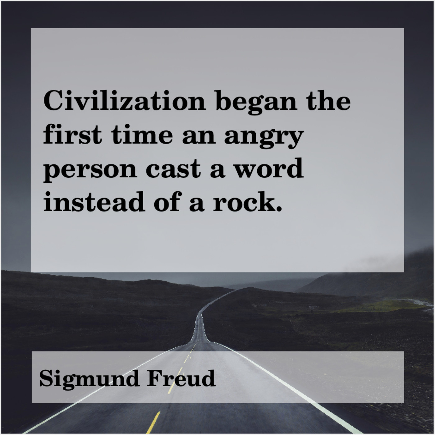 Sigmund Freud Sigmund Freud – Civilization began the first time… March 23, 2019 admin “Civilization began the first time an angry person cast a word instead of a rock.”-Sigmund Freud