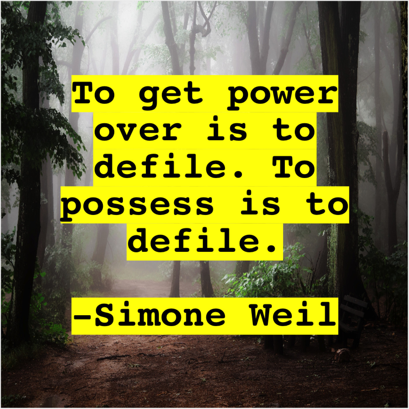 Simone Weil Simone Weil – To get power over is… January 26, 2019 admin “To get power over is to defile. To possess is to defile.”-Simone Weil