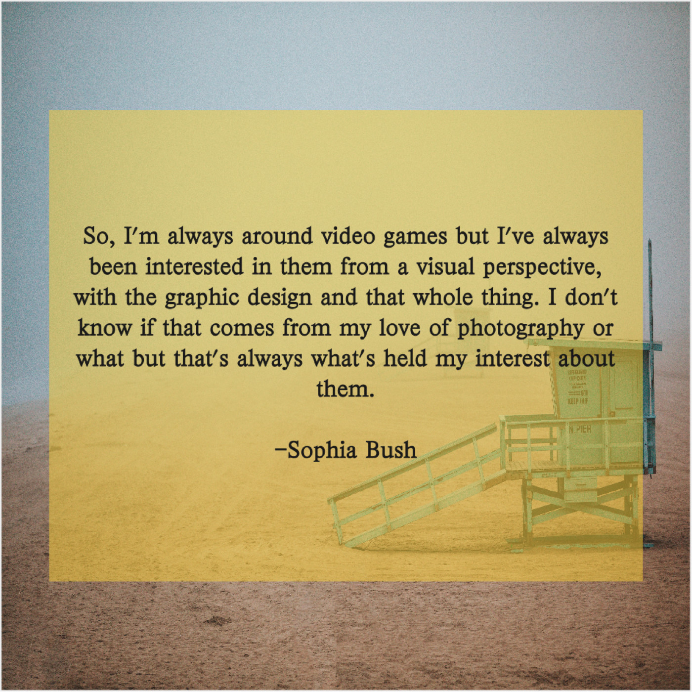 “So, I’m always around video games but I’ve always been interested in them from a visual perspective, with the graphic design and that whole thing. I don’t know if that comes from my love of photography or what but that’s always what’s held my interest about them.”