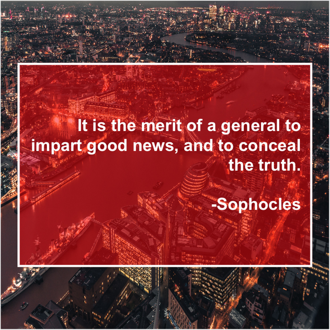 Sophocles Sophocles – It is the merit of… April 28, 2019 admin “It is the merit of a general to impart good news, and to conceal the truth.”-Sophocles