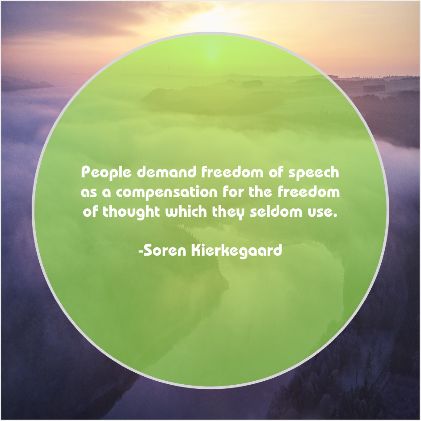 Soren Kierkegaard Soren Kierkegaard – People demand freedom of speech… September 24, 2019 admin “People demand freedom of speech as a compensation for the freedom of thought which they seldom use.”-Soren Kierkegaard