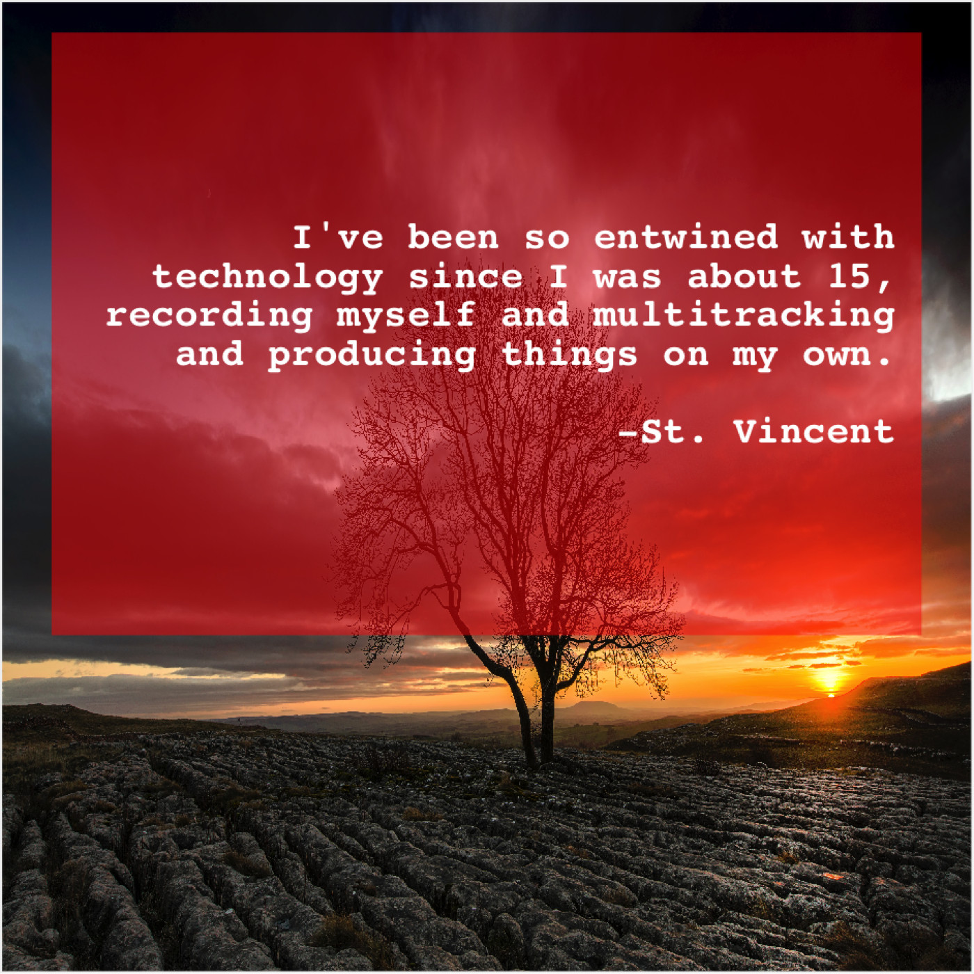 St. Vincent St. Vincent – I’ve been so entwined with… March 28, 2019 admin “I’ve been so entwined with technology since I was about 15, recording myself and multitracking and producing things on my own.”-St. Vincent