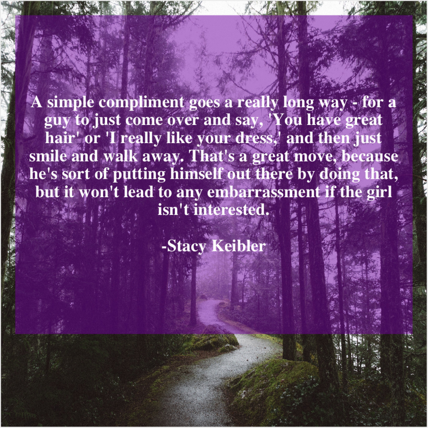 “A simple compliment goes a really long way – for a guy to just come over and say, ‘You have great hair’ or ‘I really like your dress,’ and then just smile and walk away. That’s a great move, because he’s sort of putting himself out there by doing that, but it won’t lead to any embarrassment if the girl isn’t interested.”