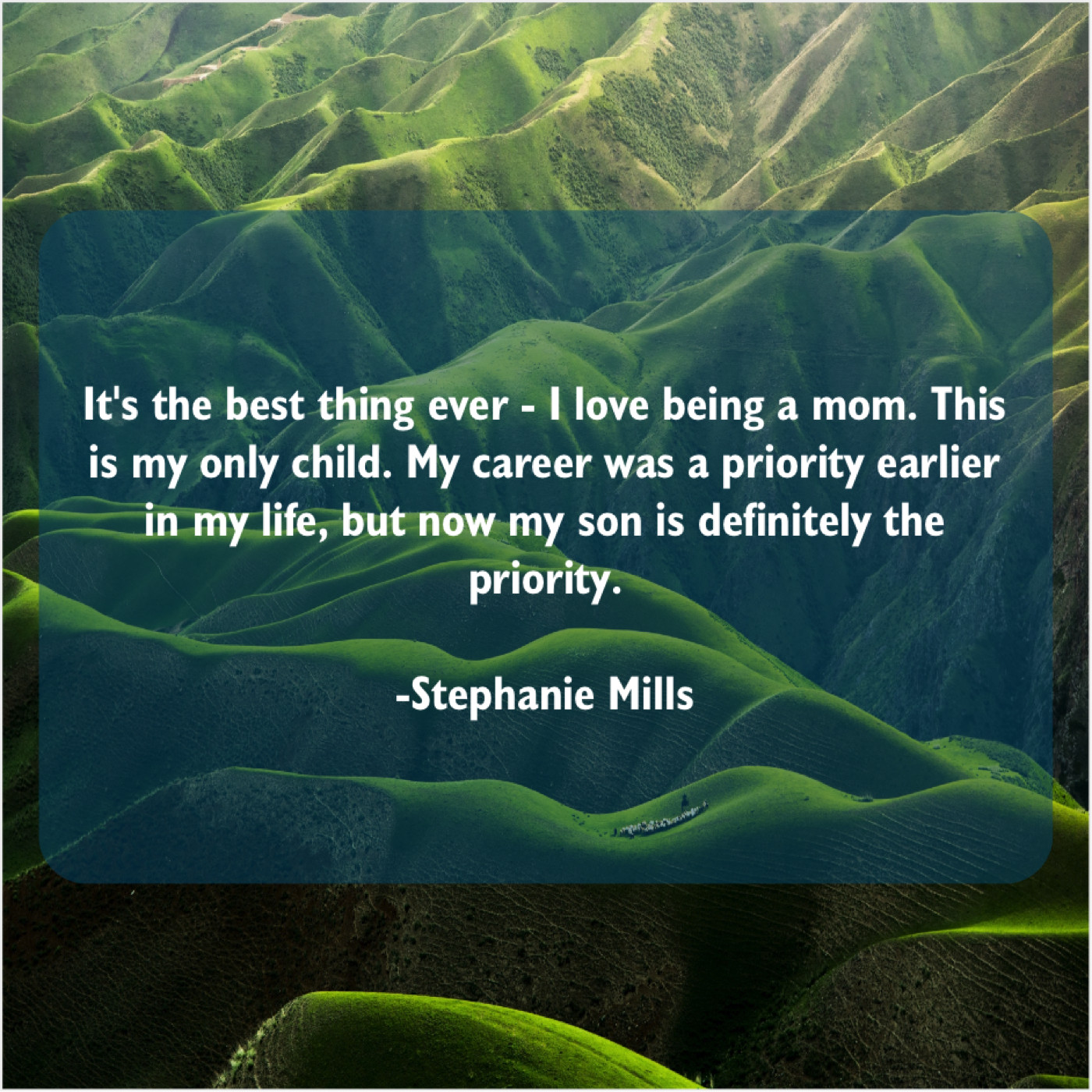 Stephanie Mills Stephanie Mills – It’s the best thing ever… May 8, 2019 admin “It’s the best thing ever – I love being a mom. This is my only child. My career was a priority earlier in my life, but now my son is definitely the priority.”-Stephanie Mills