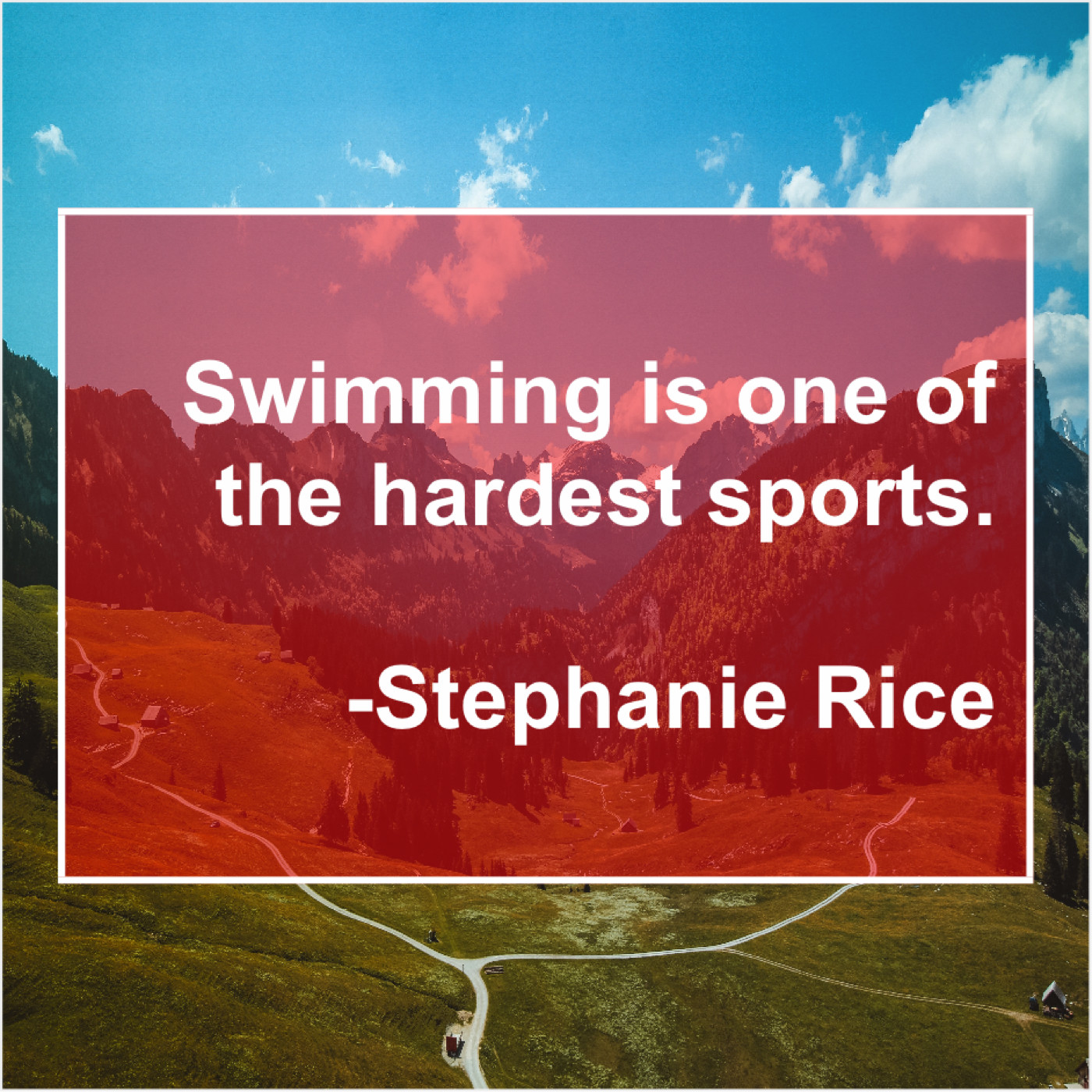 Stephanie Rice Stephanie Rice – Swimming is one of the… October 13, 2019 admin “Swimming is one of the hardest sports.”-Stephanie Rice