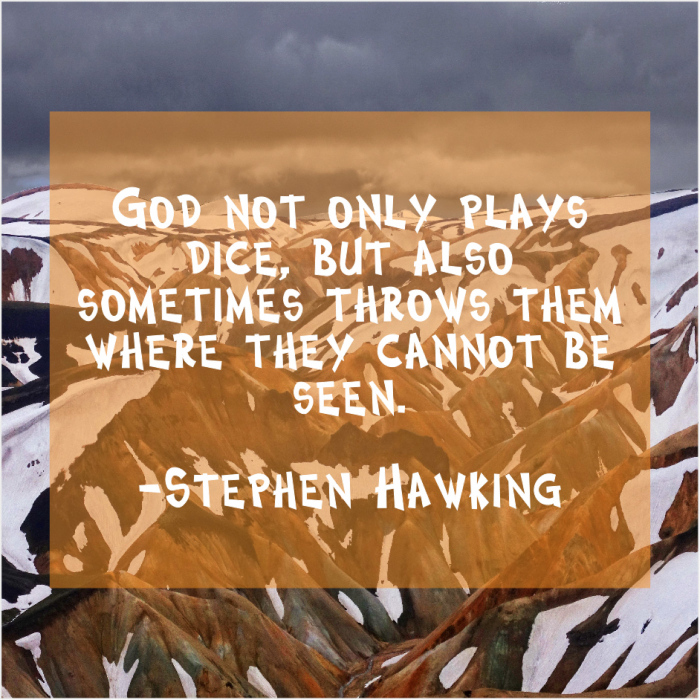 Stephen Hawking Stephen Hawking – God not only plays dice… May 7, 2019 admin “God not only plays dice, but also sometimes throws them where they cannot be seen.”-Stephen Hawking