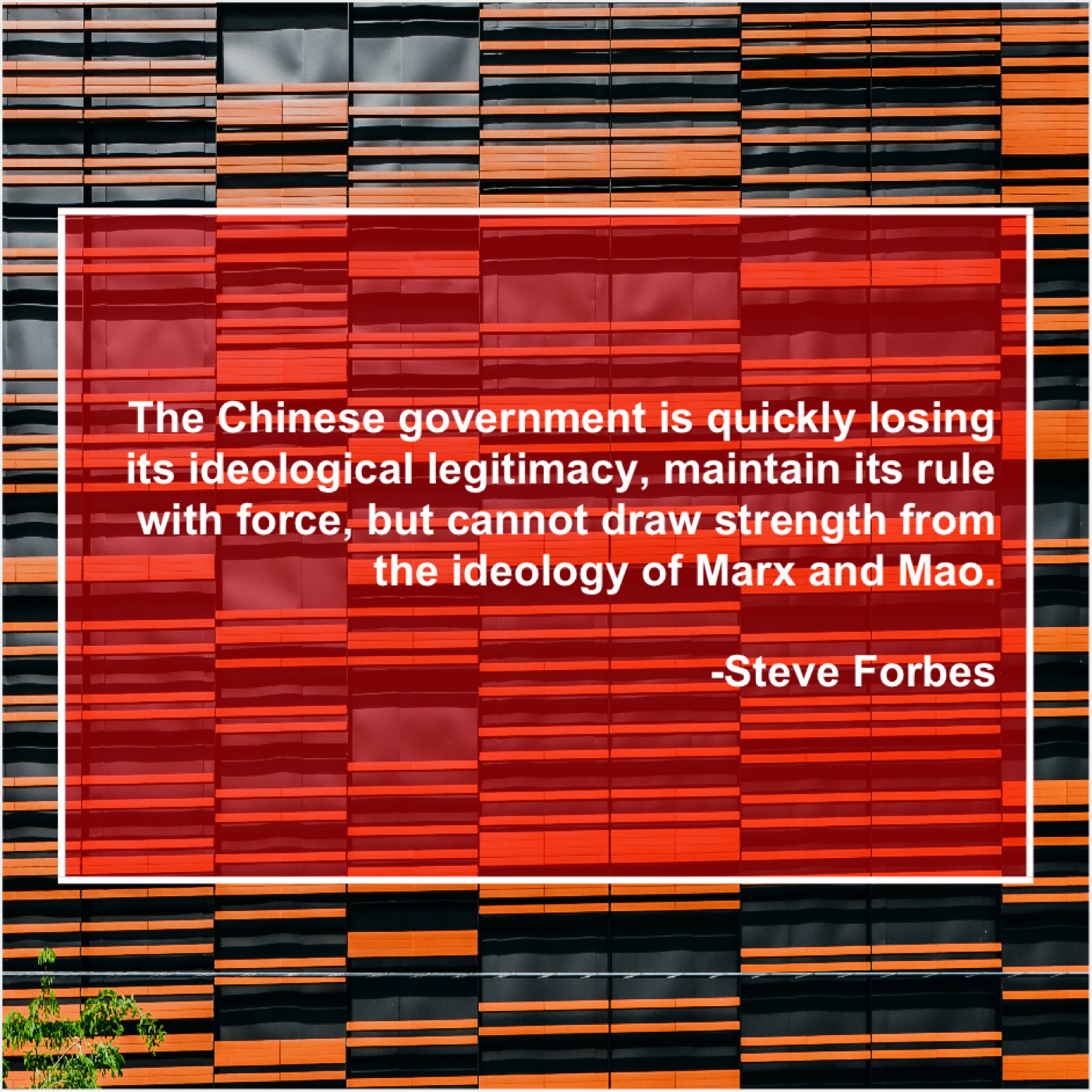 Steve Forbes Steve Forbes – The Chinese government is quickly… July 24, 2019 admin “The Chinese government is quickly losing its ideological legitimacy, maintain its rule with force, but cannot draw strength from the ideology of Marx and Mao.”-Steve Forbes