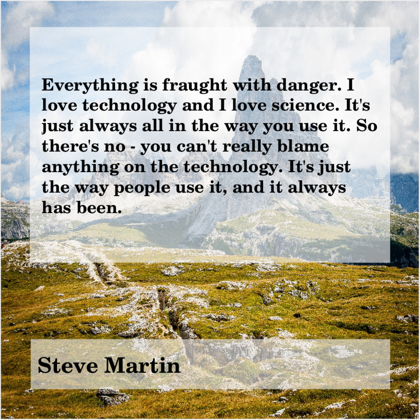 “Everything is fraught with danger. I love technology and I love science. It’s just always all in the way you use it. So there’s no – you can’t really blame anything on the technology. It’s just the way people use it, and it always has been.”