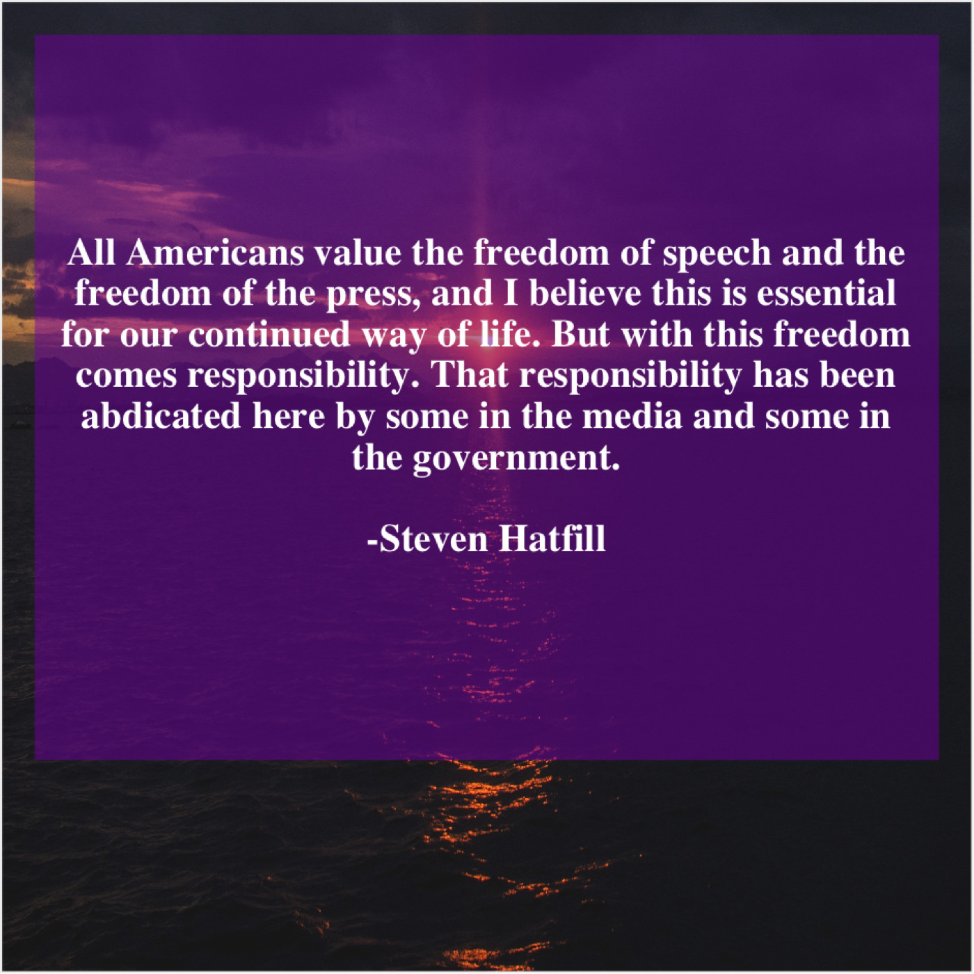 “All Americans value the freedom of speech and the freedom of the press, and I believe this is essential for our continued way of life. But with this freedom comes responsibility. That responsibility has been abdicated here by some in the media and some in the government.”
