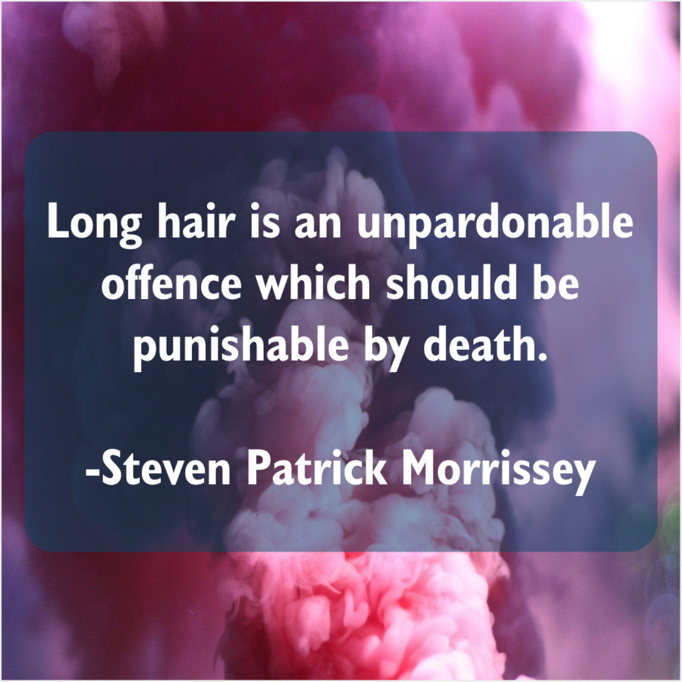 Steven Patrick Morrissey Steven Patrick Morrissey – Long hair is an unpardonable… September 27, 2019 admin “Long hair is an unpardonable offence which should be punishable by death.”-Steven Patrick Morrissey