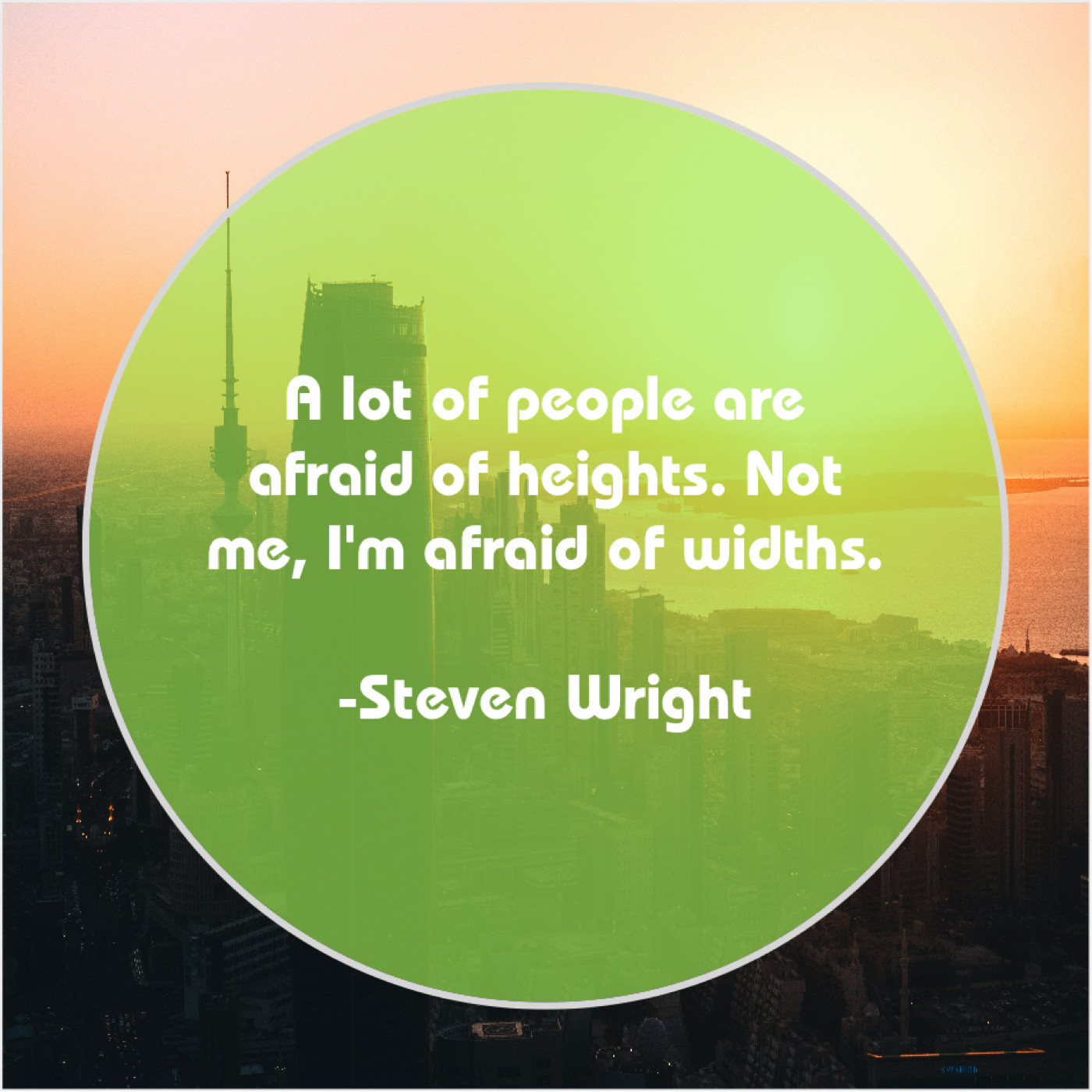 Steven Wright Steven Wright – A lot of people are… August 30, 2019 admin “A lot of people are afraid of heights. Not me, I’m afraid of widths.”-Steven Wright