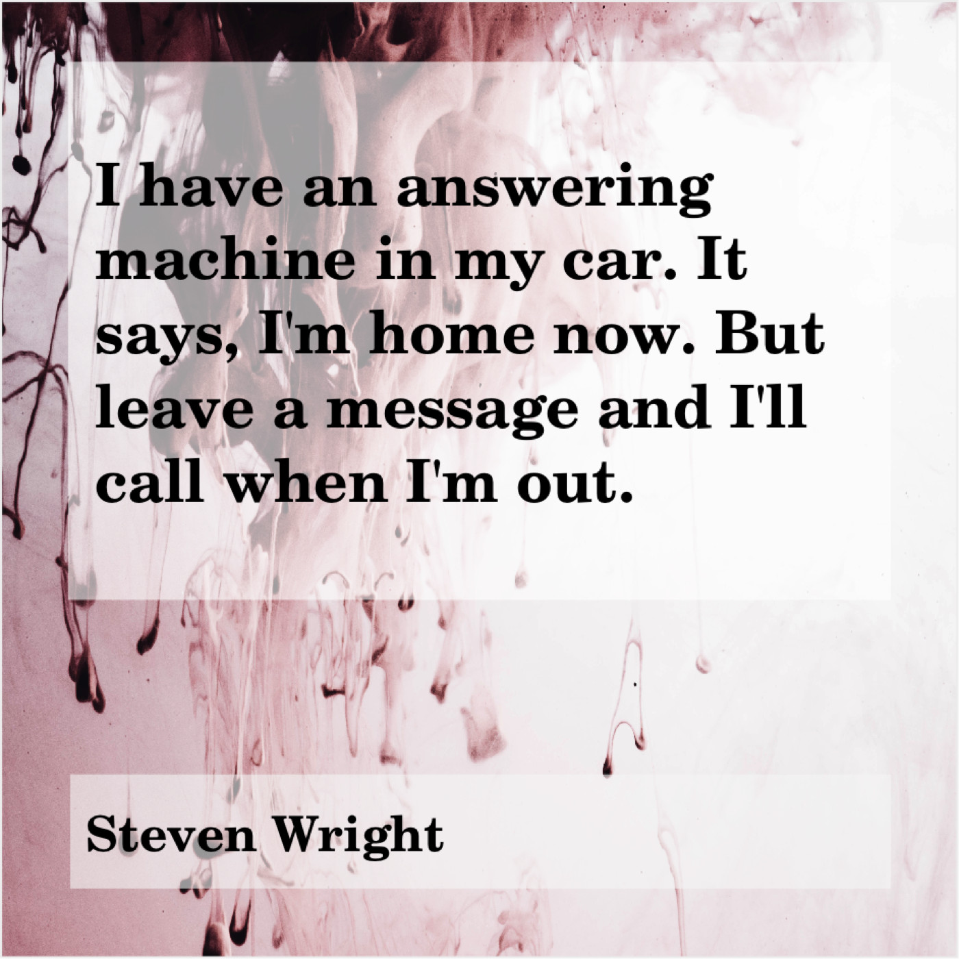 Steven Wright Steven Wright – I have an answering machine… November 24, 2018 admin “I have an answering machine in my car. It says, I’m home now. But leave a message and I’ll call when I’m out.”-Steven Wright