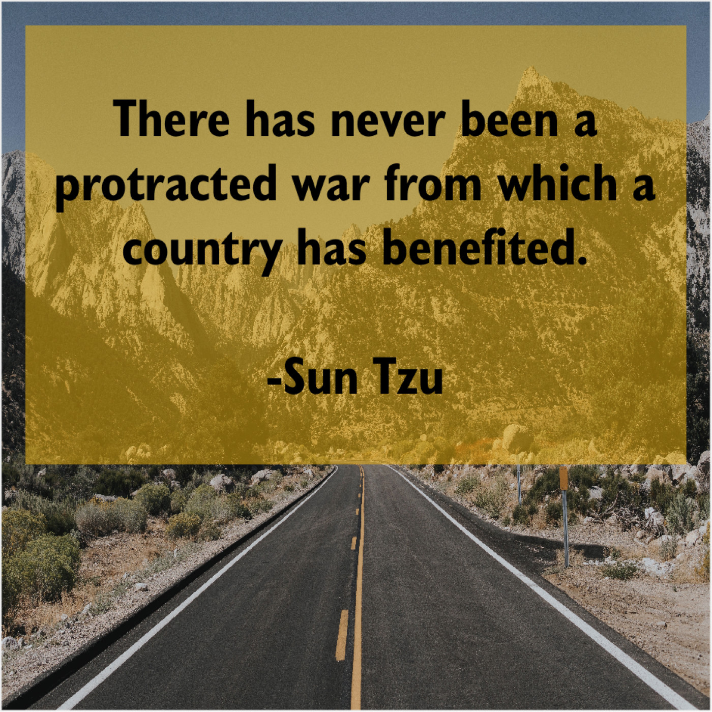 Sun Tzu Sun Tzu – There has never been a… May 22, 2019 admin “There has never been a protracted war from which a country has benefited.”-Sun Tzu