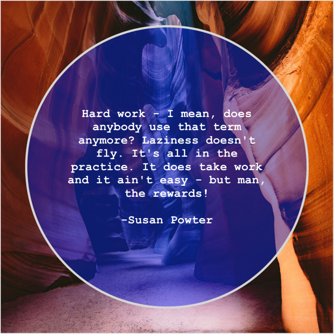 Susan Powter Susan Powter – Hard work – I mean, does… December 27, 2018 admin “Hard work – I mean, does anybody use that term anymore? Laziness doesn’t fly. It’s all in the practice. It does take work and it ain’t easy – but man, the rewards!”-Susan Powter