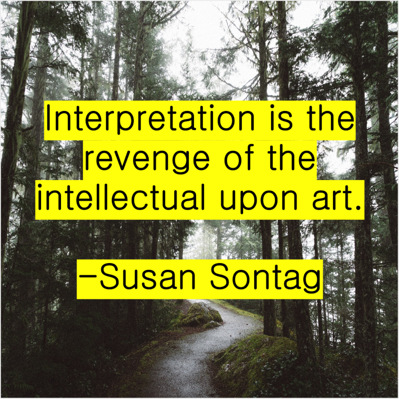 Susan Sontag Susan Sontag – Interpretation is the revenge of… December 5, 2018 admin “Interpretation is the revenge of the intellectual upon art.”-Susan Sontag