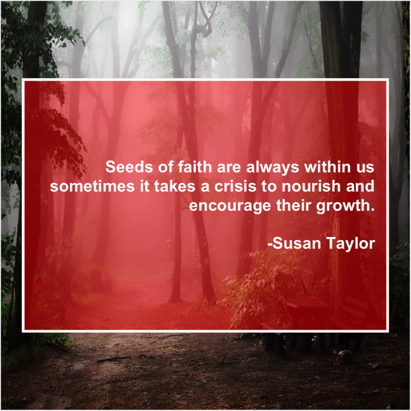 Susan Taylor Susan Taylor – Seeds of faith are always… June 25, 2019 admin “Seeds of faith are always within us sometimes it takes a crisis to nourish and encourage their growth.”-Susan Taylor