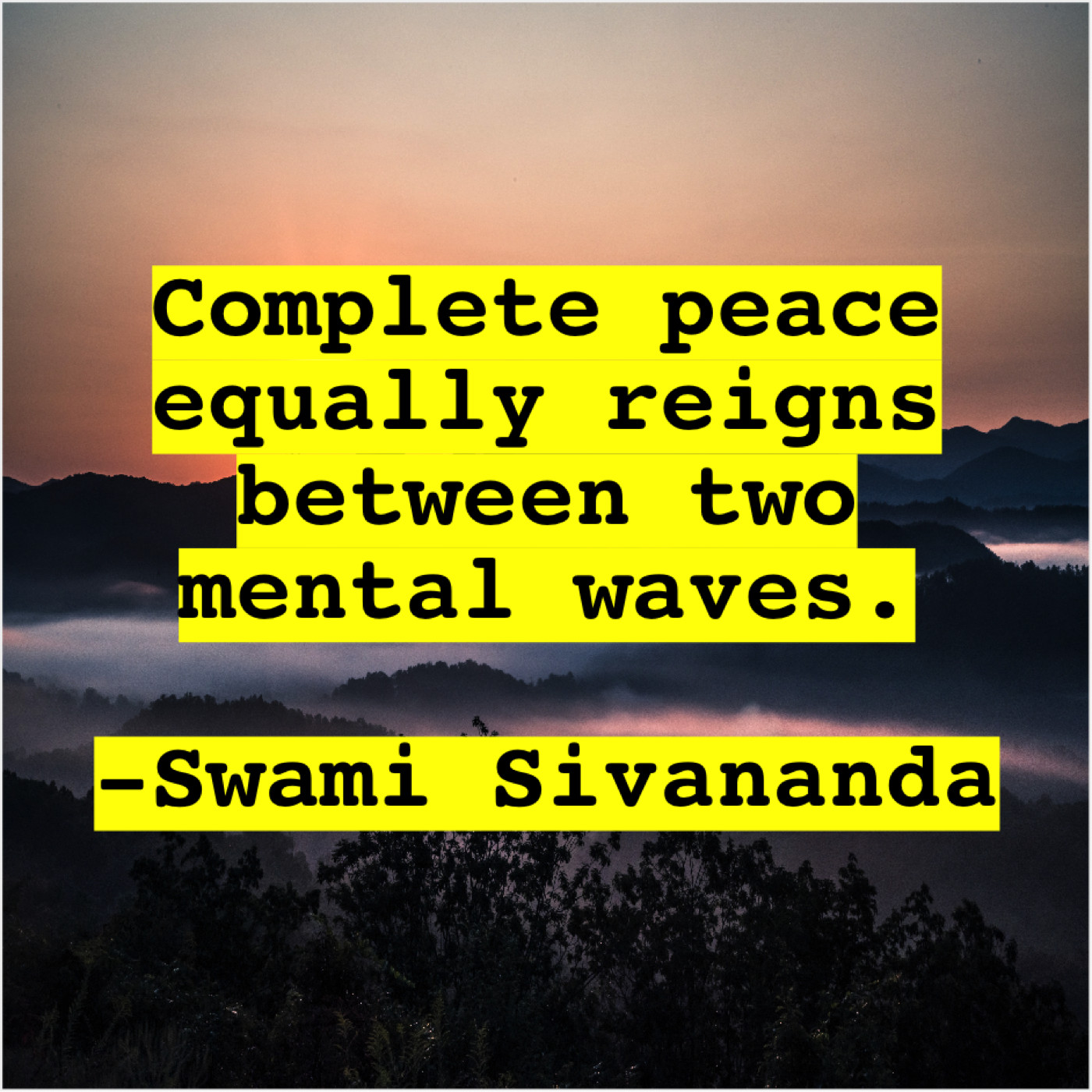 Swami Sivananda Swami Sivananda – Complete peace equally reigns between… February 24, 2019 admin “Complete peace equally reigns between two mental waves.”-Swami Sivananda