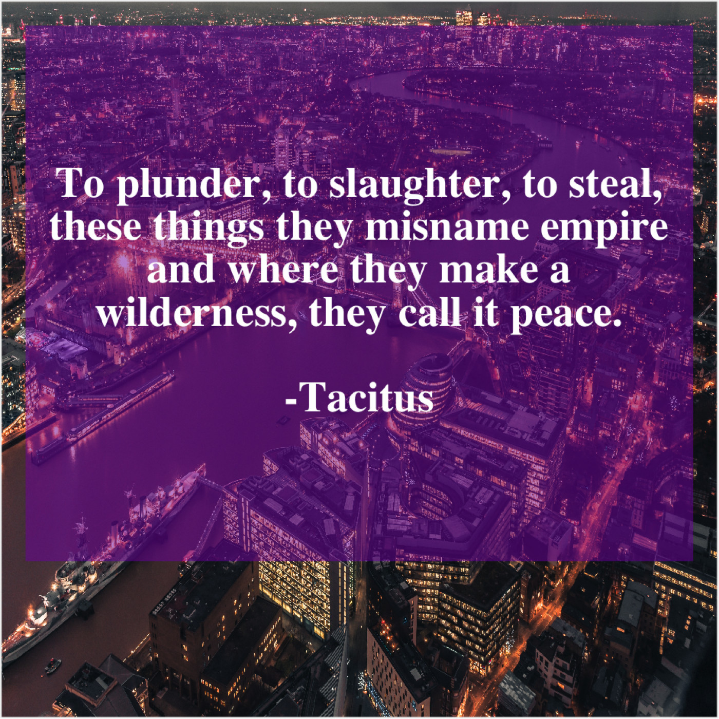 Tacitus Tacitus – To plunder, to slaughter, to… May 23, 2019 admin “To plunder, to slaughter, to steal, these things they misname empire and where they make a wilderness, they call it peace.”-Tacitus