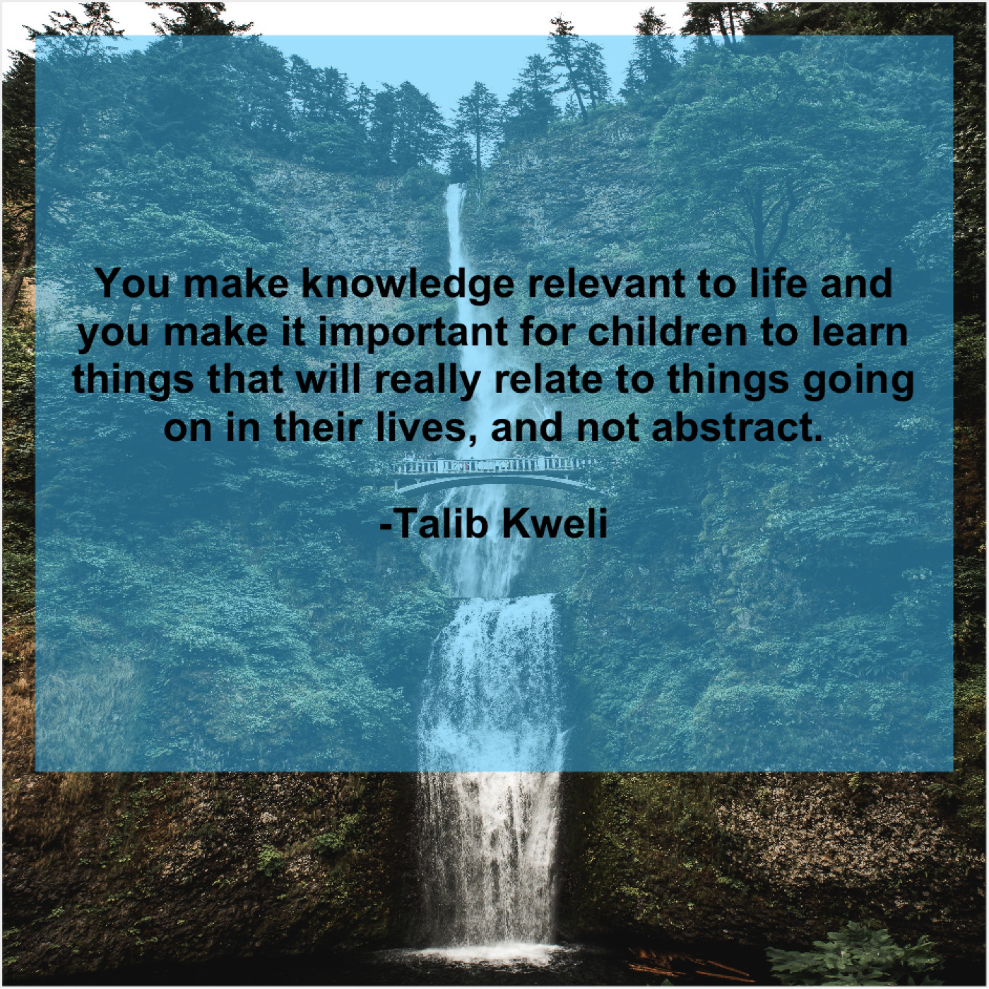 Talib Kweli Talib Kweli – You make knowledge relevant to… October 23, 2019 admin “You make knowledge relevant to life and you make it important for children to learn things that will really relate to things going on in their lives, and not abstract.”-Talib Kweli