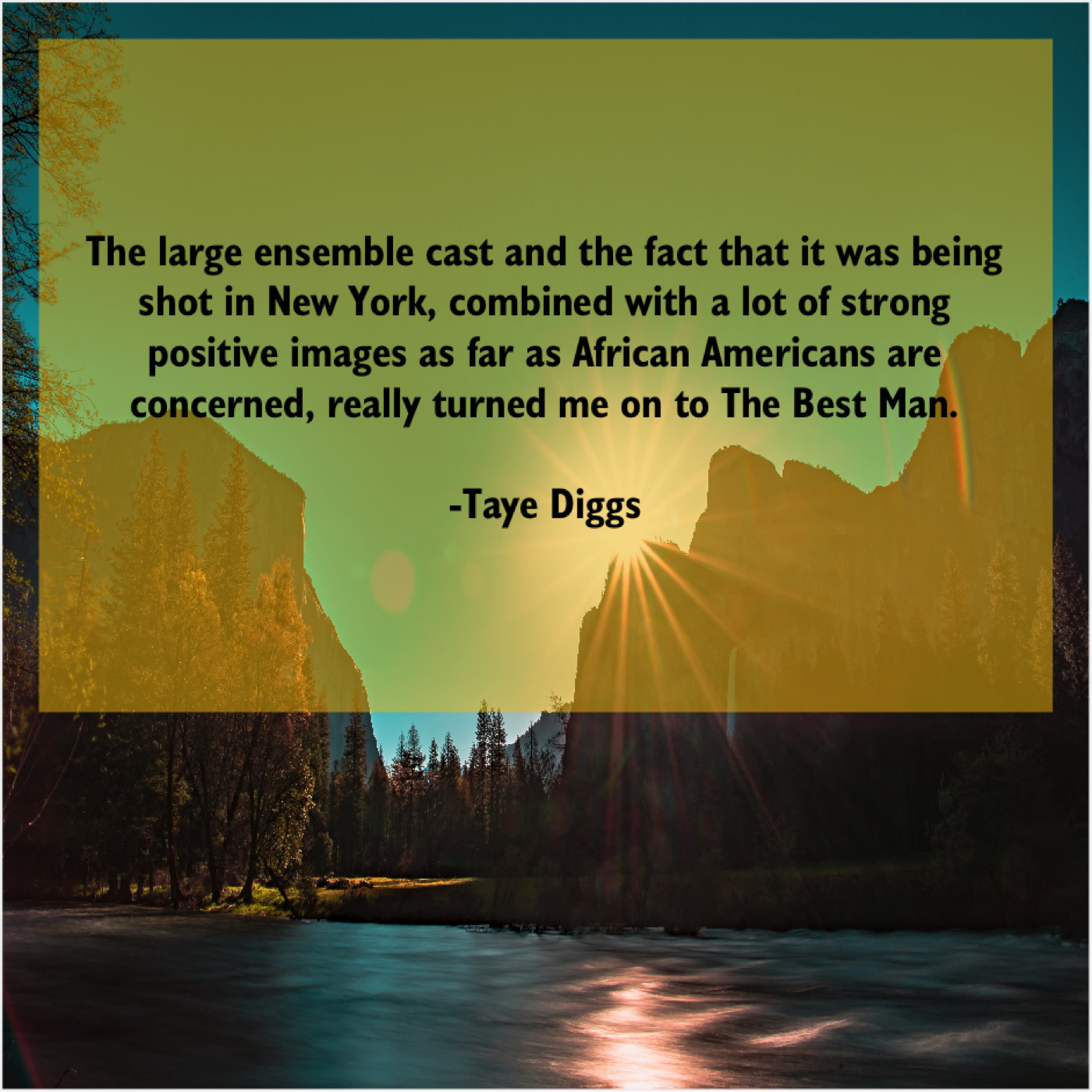 Taye Diggs Taye Diggs – The large ensemble cast and… June 9, 2019 admin “The large ensemble cast and the fact that it was being shot in New York, combined with a lot of strong positive images as far as African Americans are concerned, really turned me on to The Best Man.”-Taye Diggs