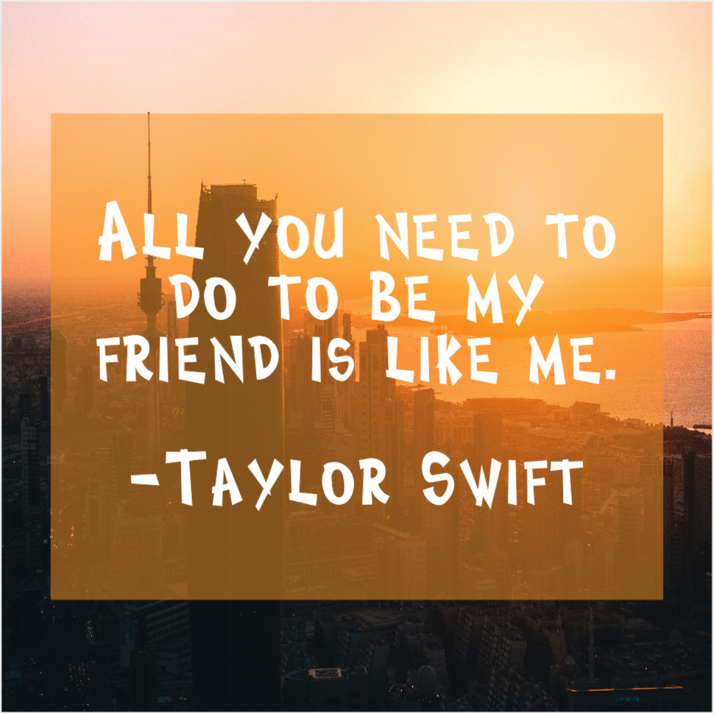 Taylor Swift Taylor Swift – All you need to do… April 27, 2019 admin “All you need to do to be my friend is like me.”-Taylor Swift