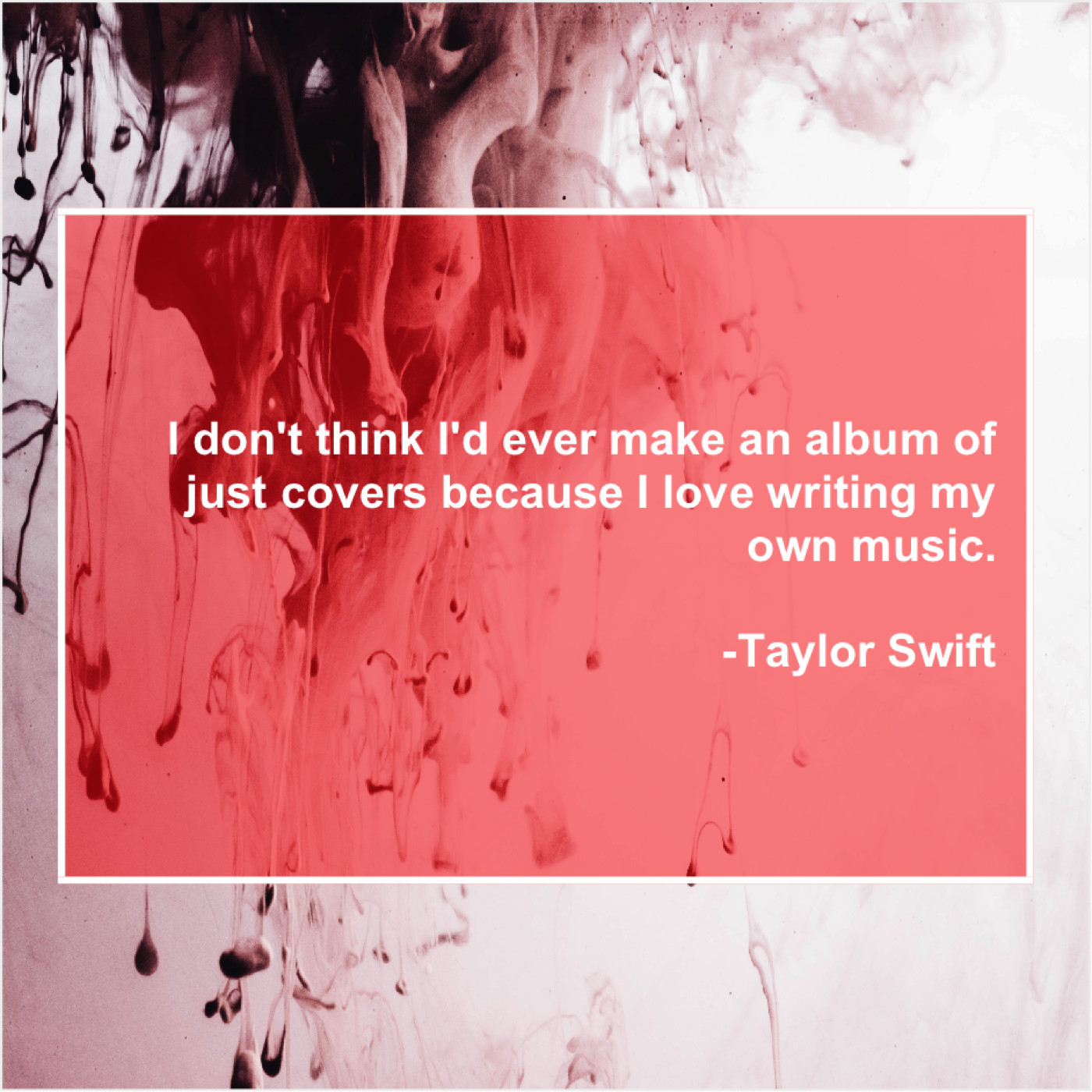 Taylor Swift Taylor Swift – I don’t think I’d ever… September 29, 2019 admin “I don’t think I’d ever make an album of just covers because I love writing my own music.”-Taylor Swift