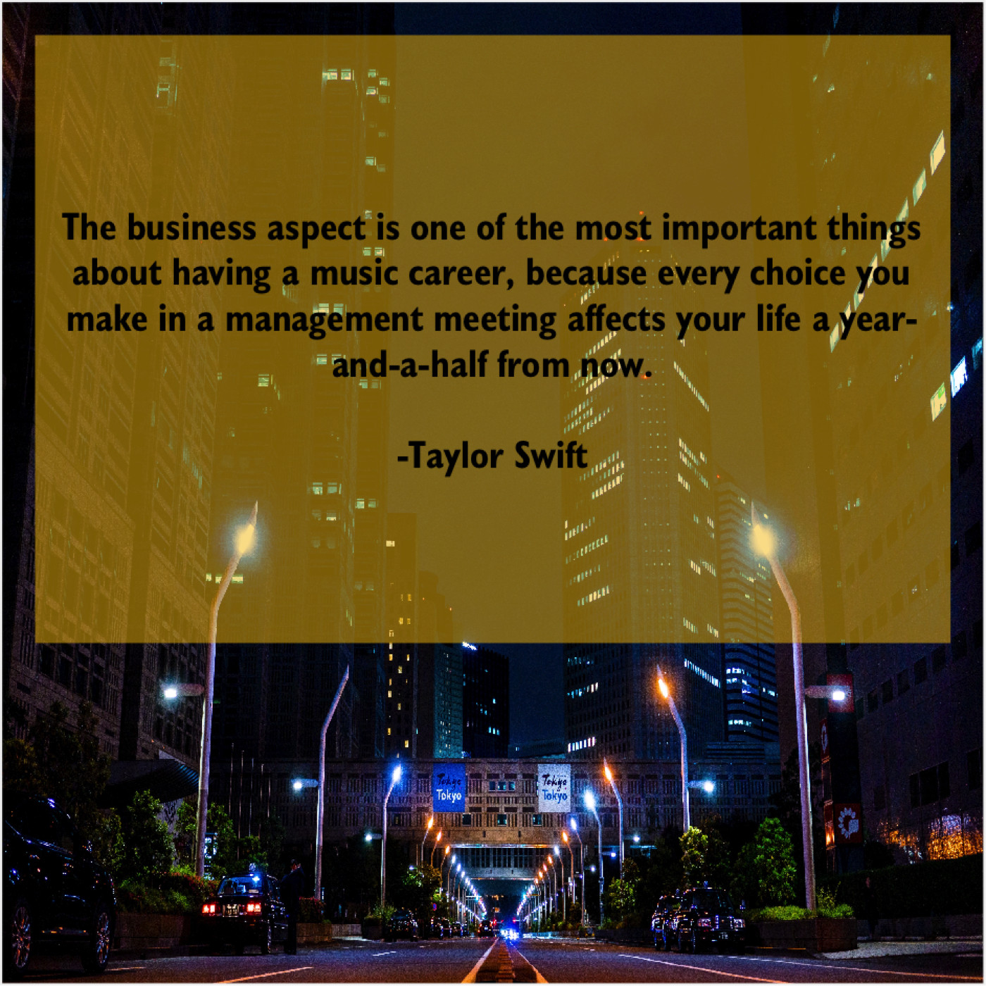 Taylor Swift Taylor Swift – The business aspect is one… June 19, 2019 admin “The business aspect is one of the most important things about having a music career, because every choice you make in a management meeting affects your life a year-and-a-half from now.”-Taylor Swift