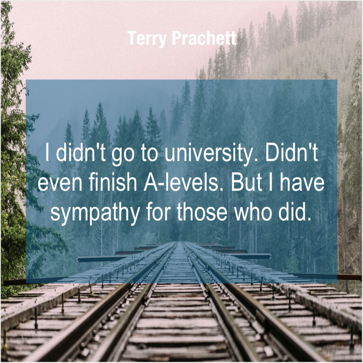 Terry Prachett Terry Prachett – I didn’t go to university… November 14, 2018 admin “I didn’t go to university. Didn’t even finish A-levels. But I have sympathy for those who did.”-Terry Prachett