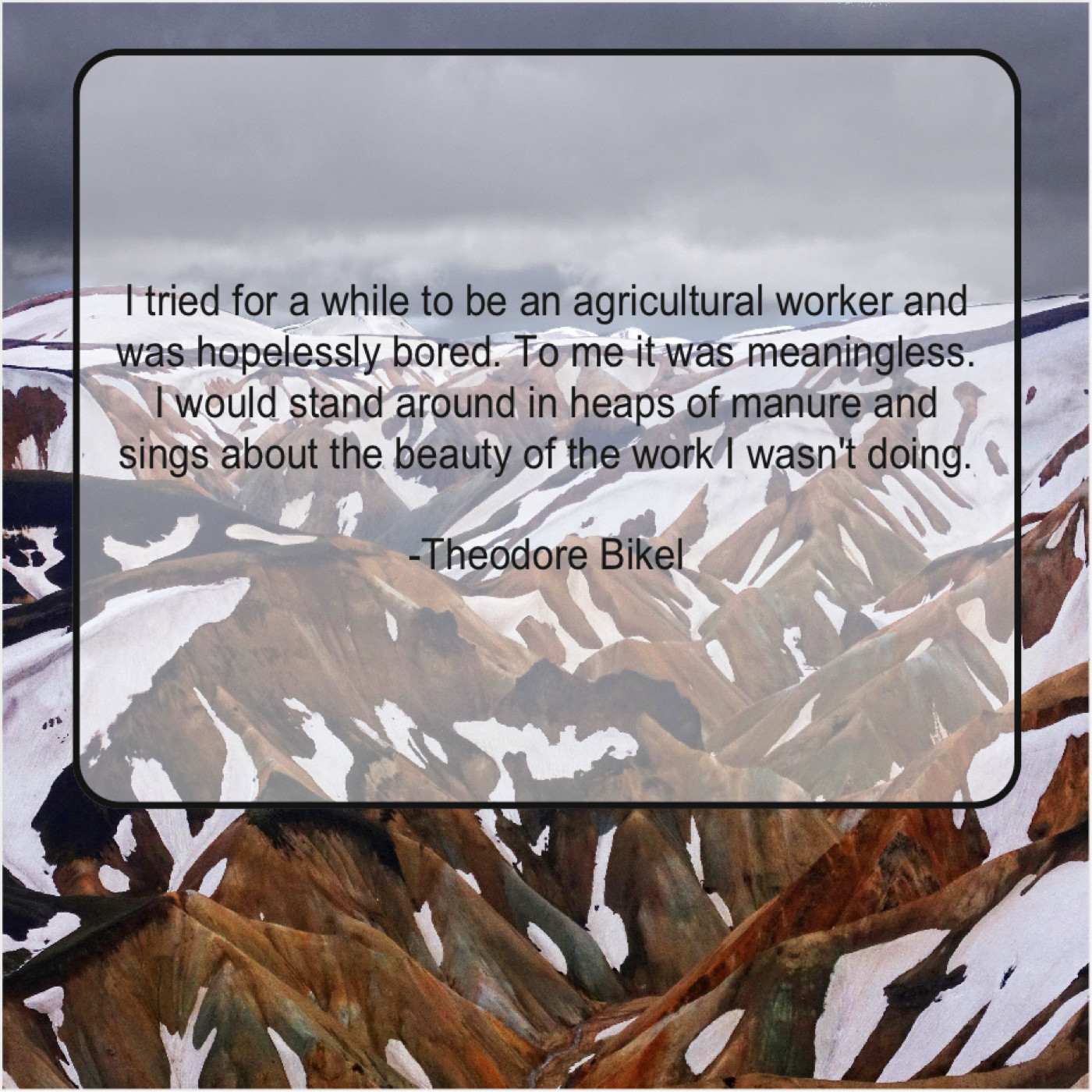 “I tried for a while to be an agricultural worker and was hopelessly bored. To me it was meaningless. I would stand around in heaps of manure and sings about the beauty of the work I wasn’t doing.”