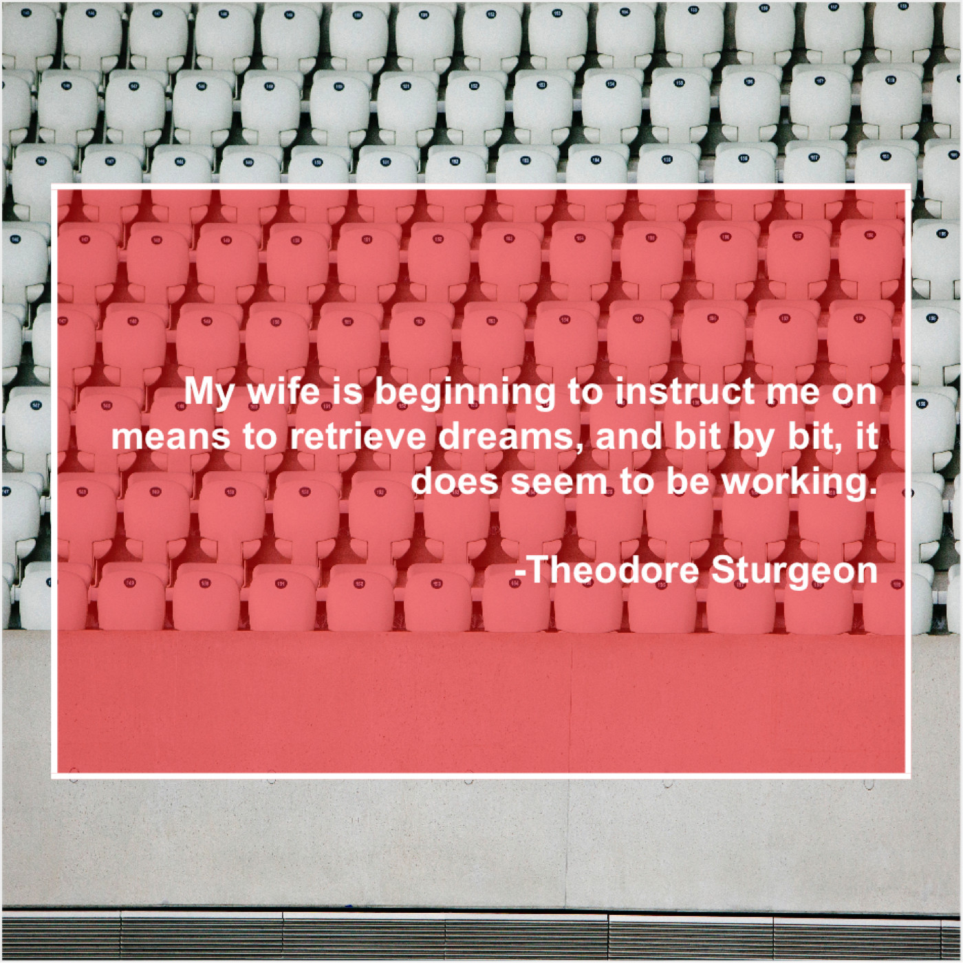 Theodore Sturgeon Theodore Sturgeon – My wife is beginning to… February 17, 2019 admin “My wife is beginning to instruct me on means to retrieve dreams, and bit by bit, it does seem to be working.”-Theodore Sturgeon