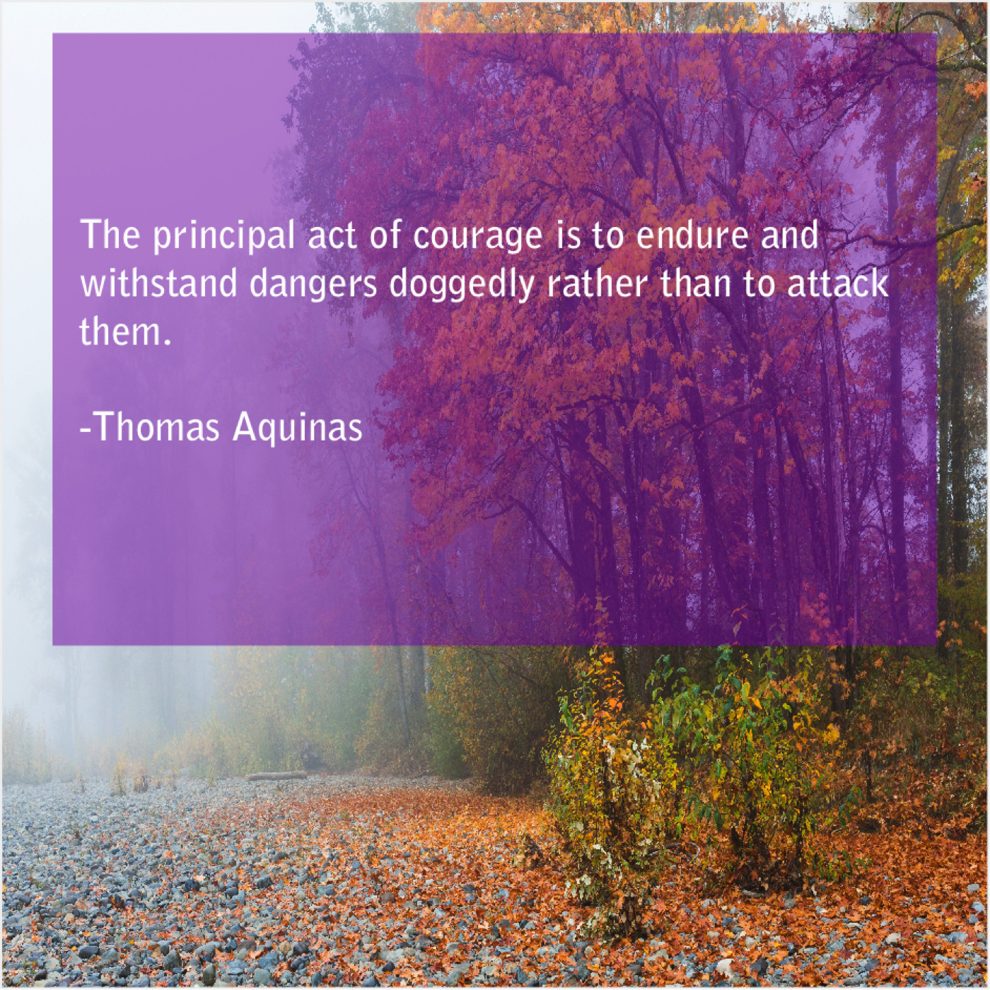 Thomas Aquinas Thomas Aquinas – The principal act of courage… January 4, 2019 admin “The principal act of courage is to endure and withstand dangers doggedly rather than to attack them.”-Thomas Aquinas