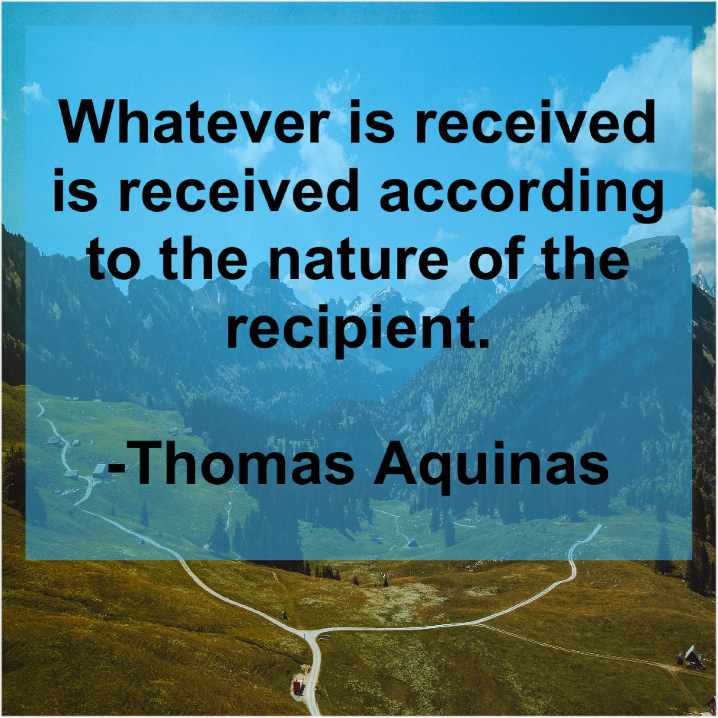 Thomas Aquinas Thomas Aquinas – Whatever is received is received… November 18, 2018 admin “Whatever is received is received according to the nature of the recipient.”-Thomas Aquinas