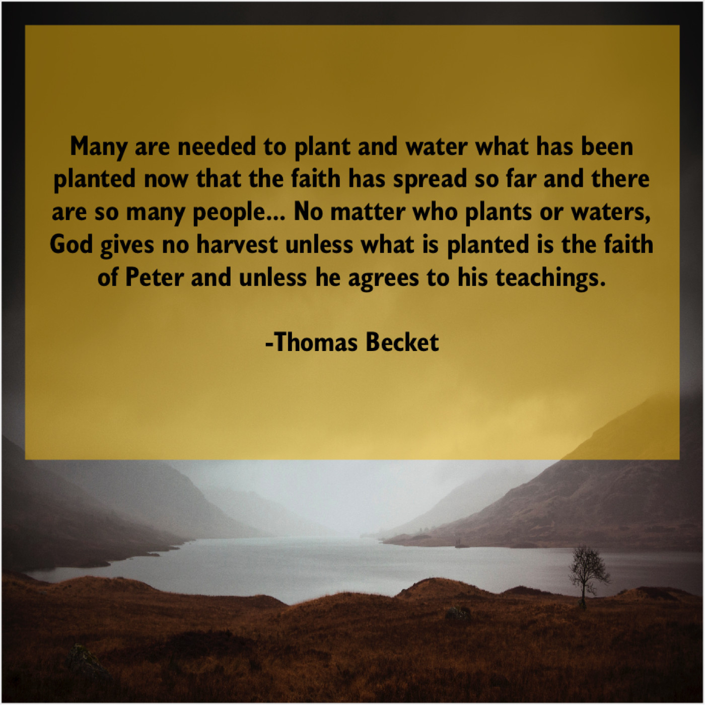 “Many are needed to plant and water what has been planted now that the faith has spread so far and there are so many people… No matter who plants or waters, God gives no harvest unless what is planted is the faith of Peter and unless he agrees to his teachings.”