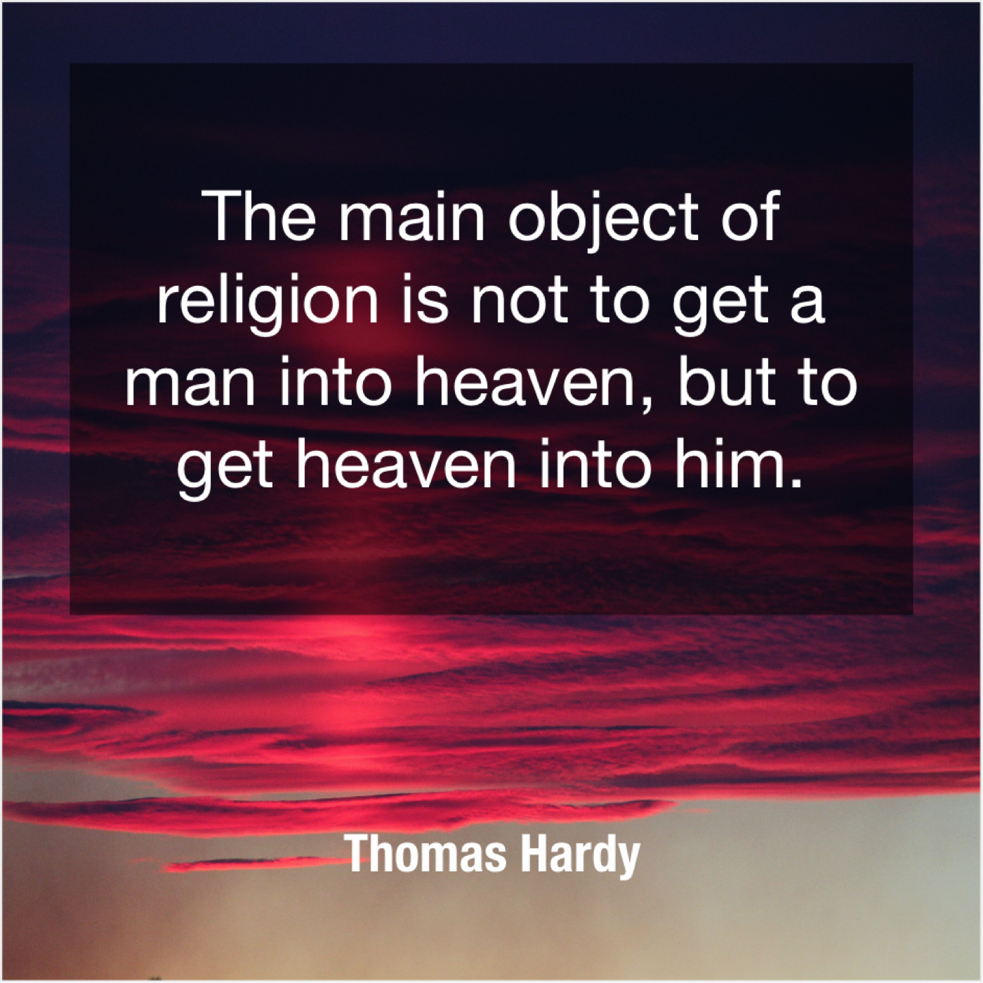 Thomas Hardy Thomas Hardy – The main object of religion… December 14, 2018 admin “The main object of religion is not to get a man into heaven, but to get heaven into him.”-Thomas Hardy
