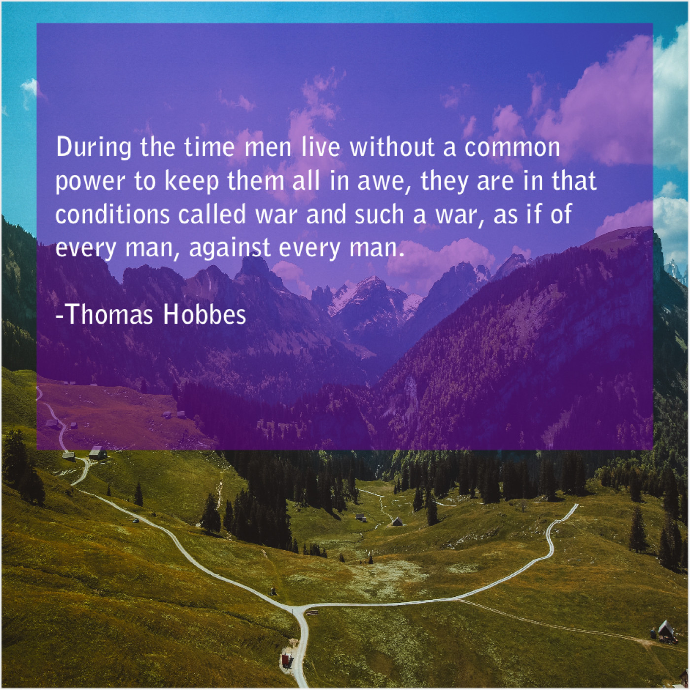 Thomas Hobbes Thomas Hobbes – During the time men live… June 12, 2019 admin “During the time men live without a common power to keep them all in awe, they are in that conditions called war and such a war, as if of every man, against every man.”-Thomas Hobbes