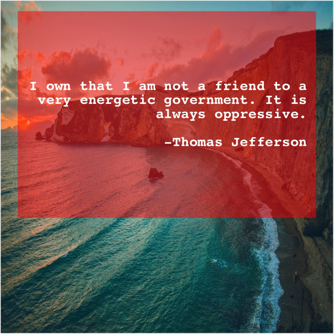 Thomas Jefferson Thomas Jefferson – I own that I am… November 11, 2018 admin “I own that I am not a friend to a very energetic government. It is always oppressive.”-Thomas Jefferson