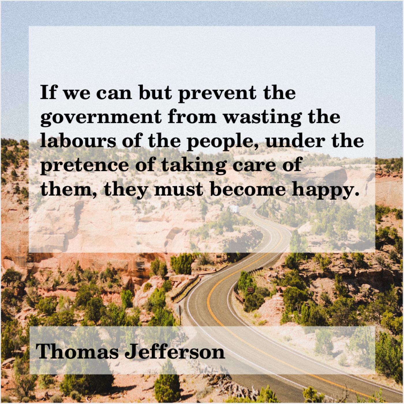 Thomas Jefferson Thomas Jefferson – If we can but prevent… September 15, 2019 admin “If we can but prevent the government from wasting the labours of the people, under the pretence of taking care of them, they must become happy.”-Thomas Jefferson