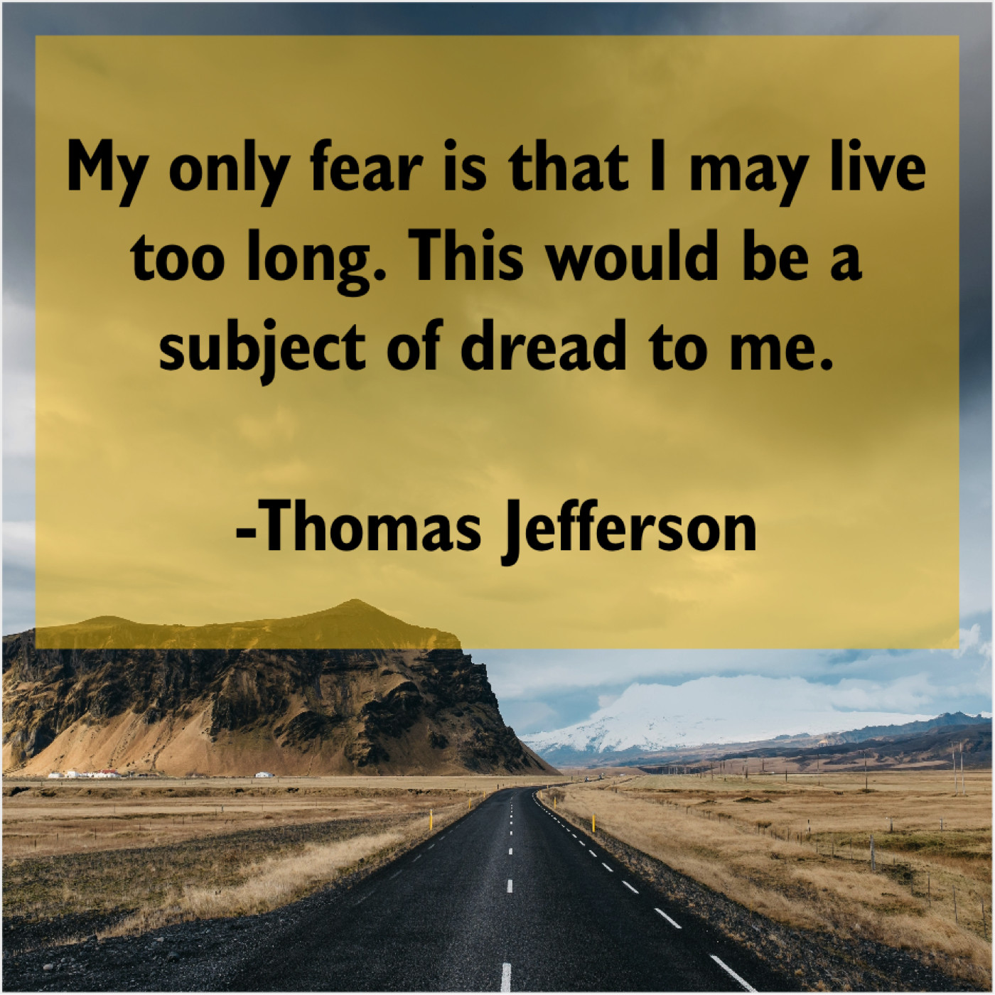 Thomas Jefferson Thomas Jefferson – My only fear is that… October 4, 2019 admin “My only fear is that I may live too long. This would be a subject of dread to me.”-Thomas Jefferson