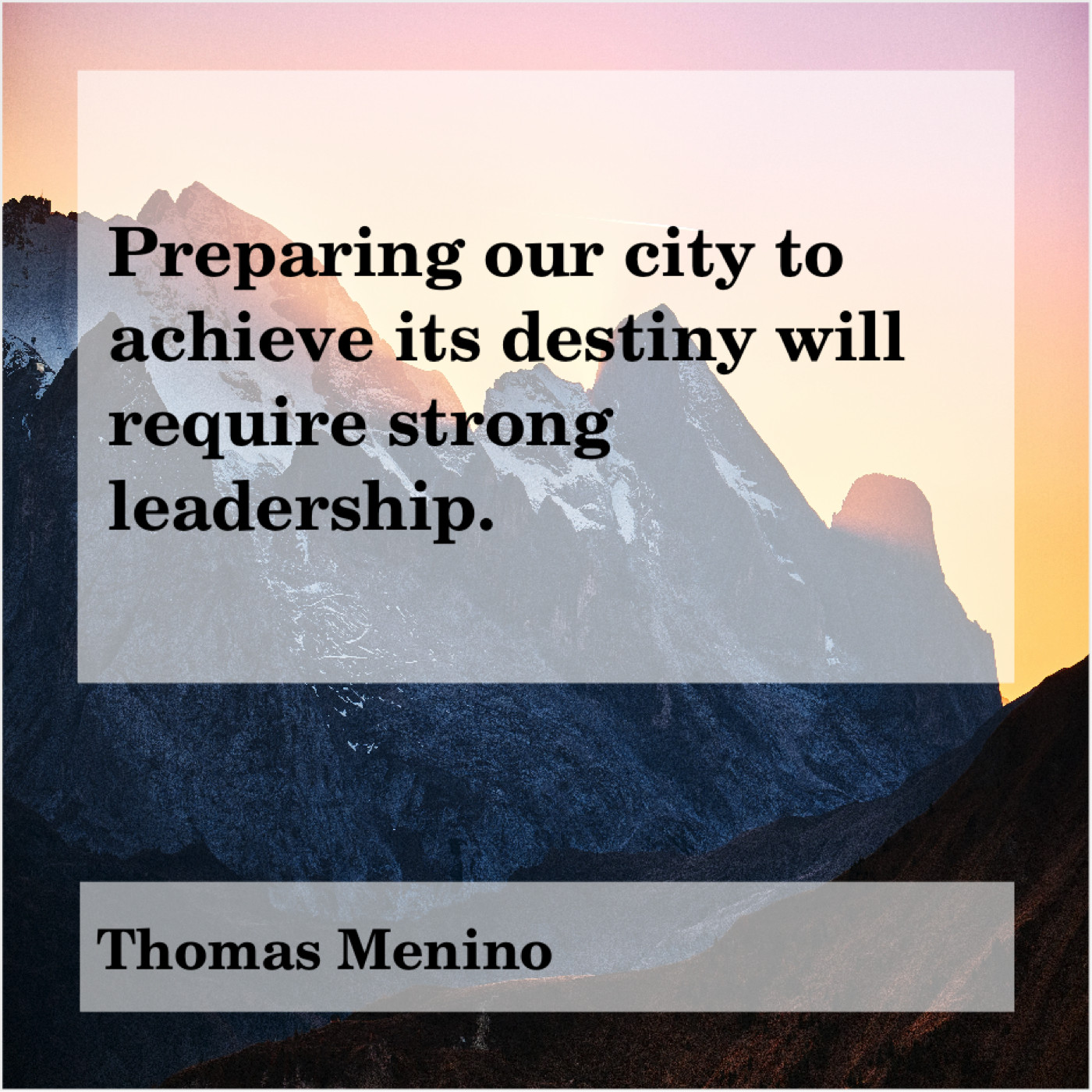 Thomas Menino Thomas Menino – Preparing our city to achieve… February 16, 2019 admin “Preparing our city to achieve its destiny will require strong leadership.”-Thomas Menino